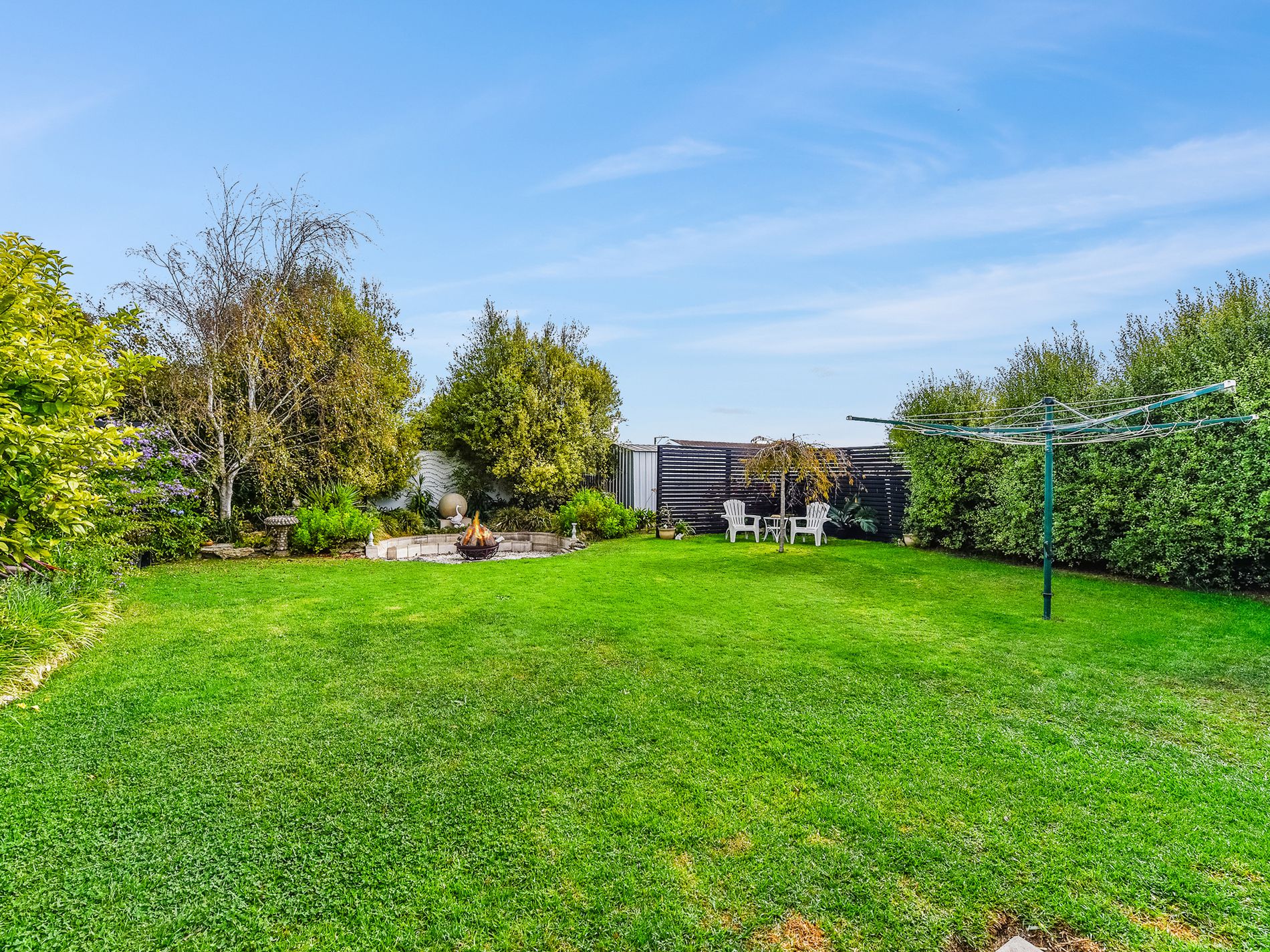 Through the rear door of the home, you will be amazed by the big, bright, pergola. With its tiled floor, freestanding wood fire, and retractable screens, it has been designed for year-round entertaining.