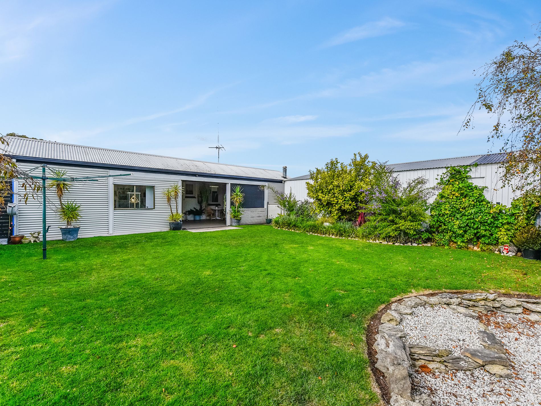 Finally, the 6m x 13.5m shed. Concreted, with power and a free-standing wood fire, will make the perfect workshop/mancave.
