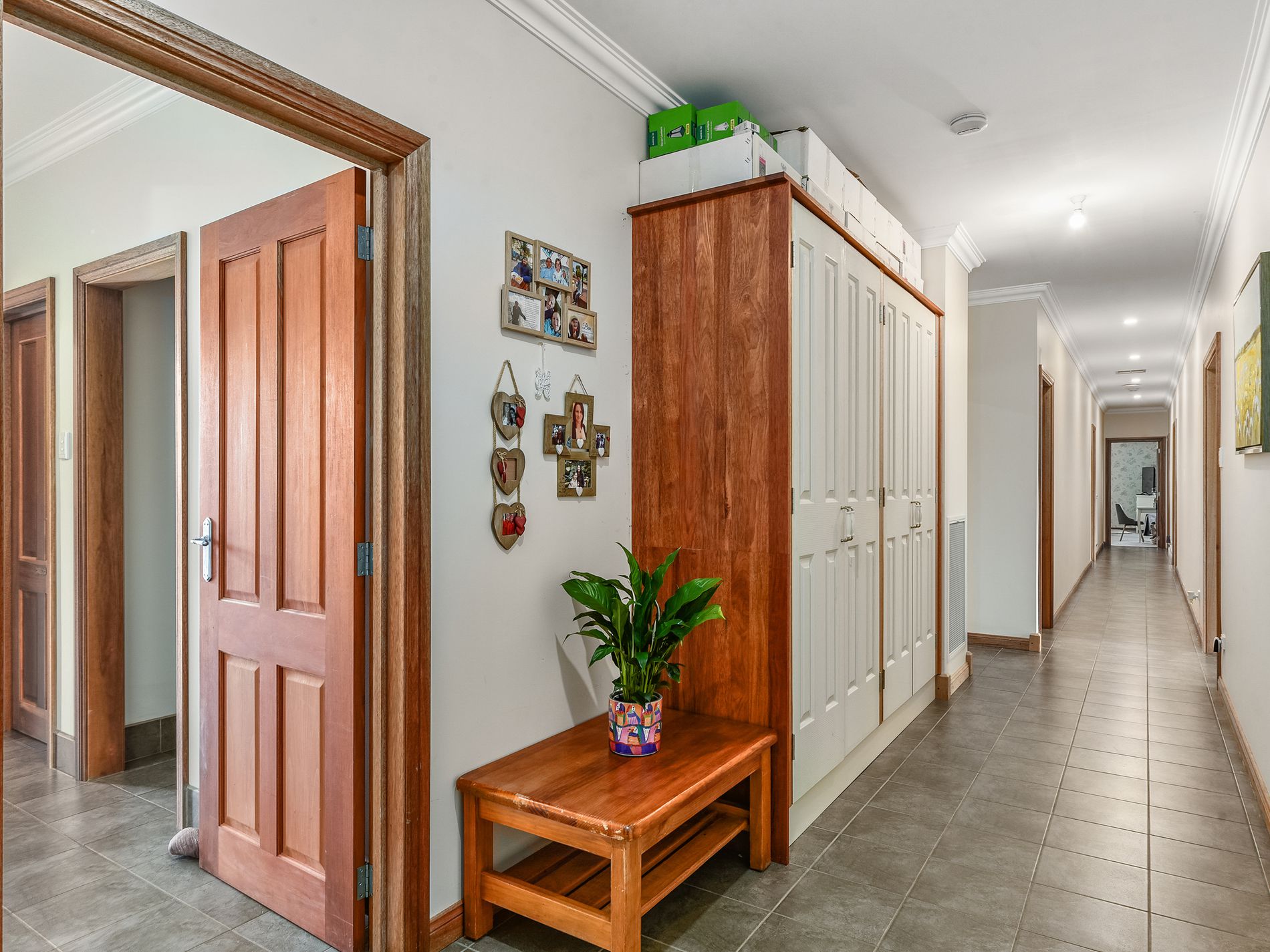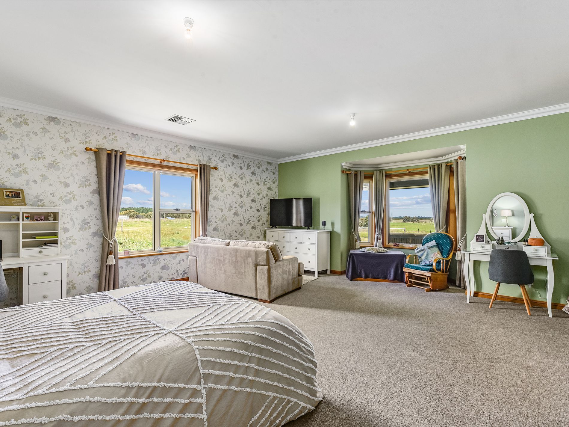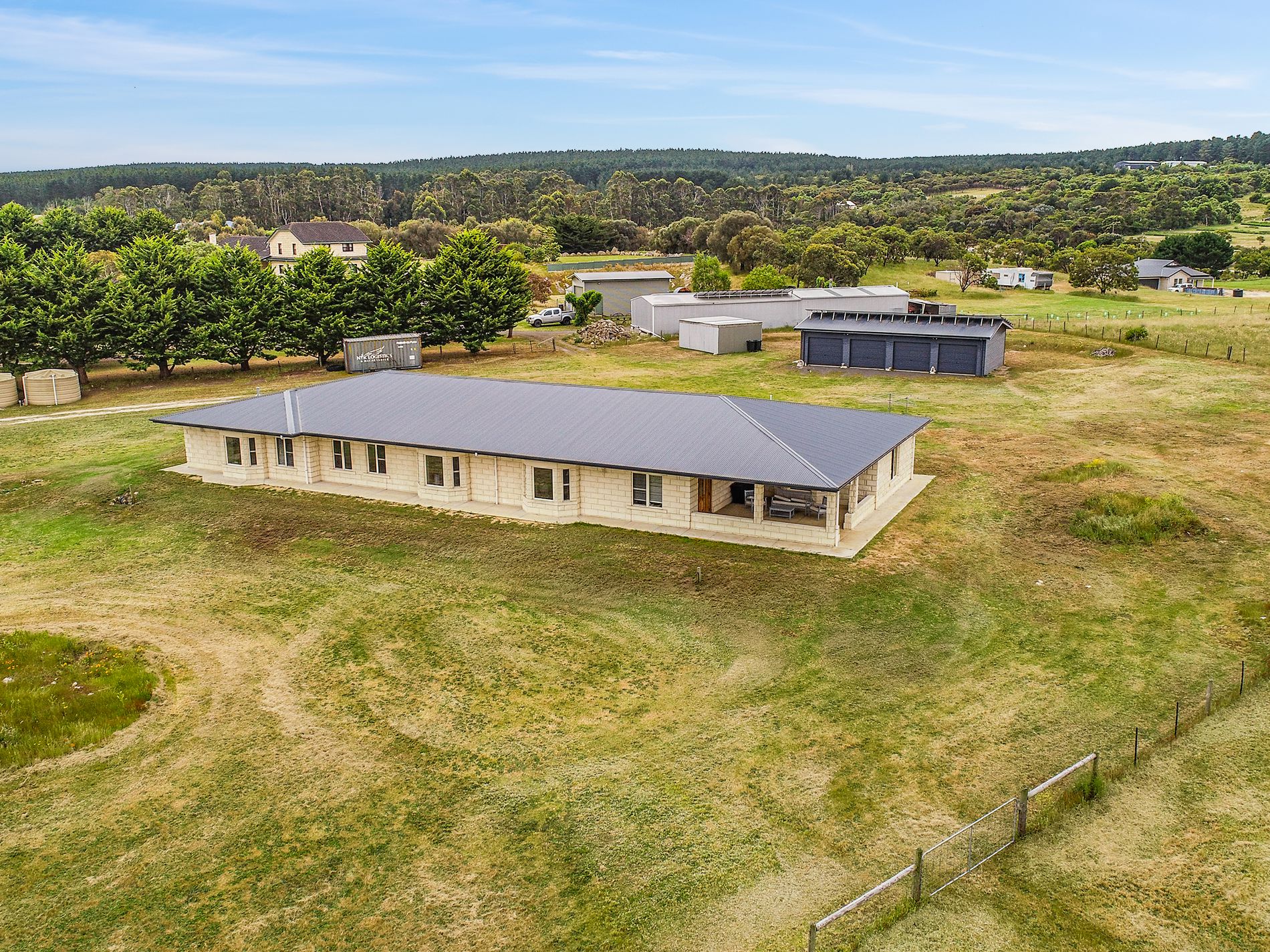 This beautiful home offers the discerning buyer grand proportions, solid construction and energy efficiency. Nestled on approximately 2.02Ha of land, this exquisite home was built in 2020 with a keen focus on energy conservation and sustainable living practices. Situated on a sprawling 2.02Ha (4.9Acres) elevated parcel, this property is divided into two paddocks and is on a corner block giving you dual road frontages.