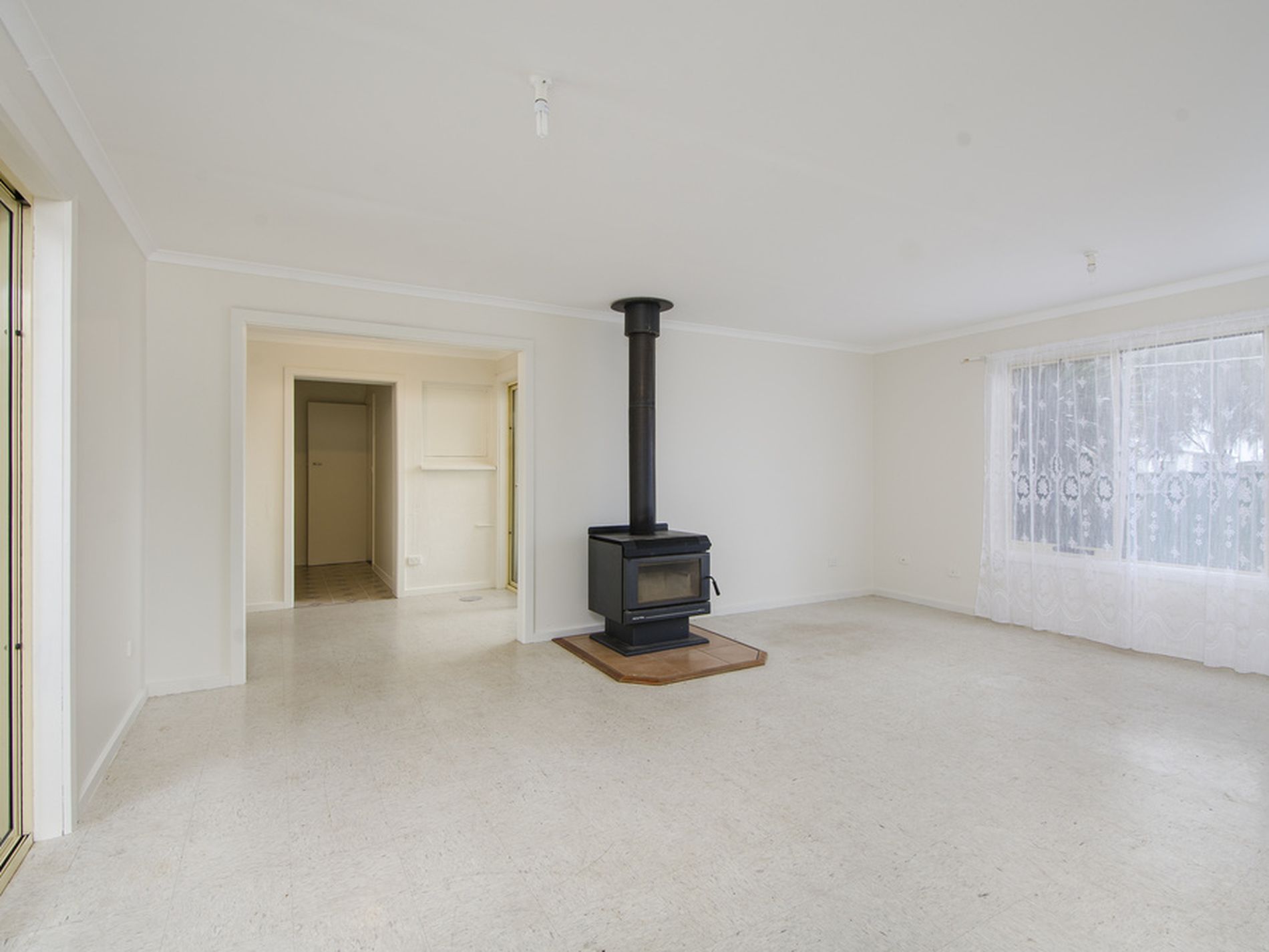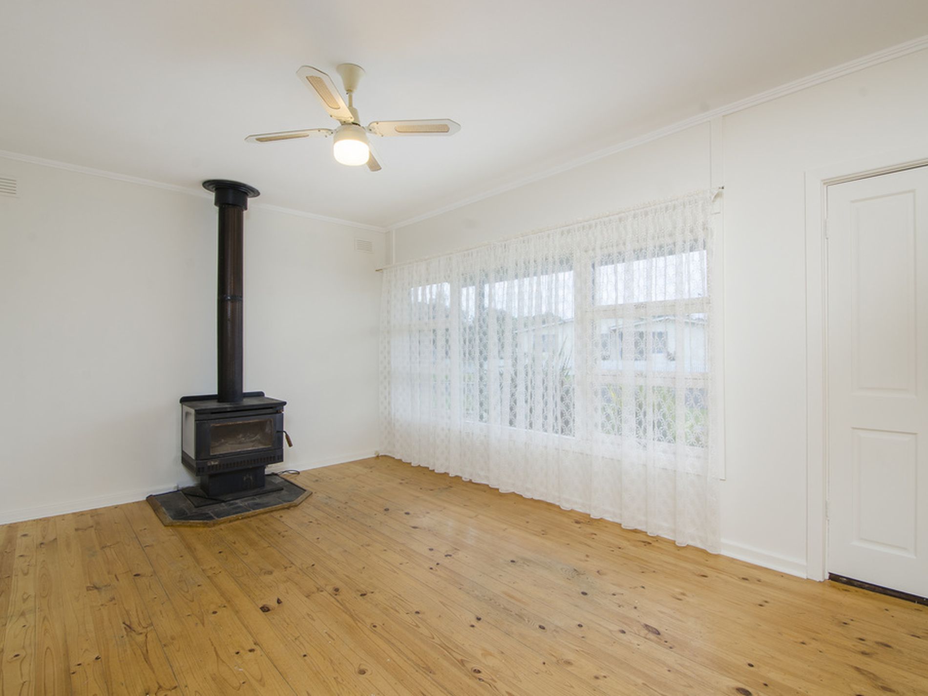 Inviting Front Lounge: Featuring elegant timber floors, a cosy slow combustion fireplace, and a ceiling fan for year-round comfort.