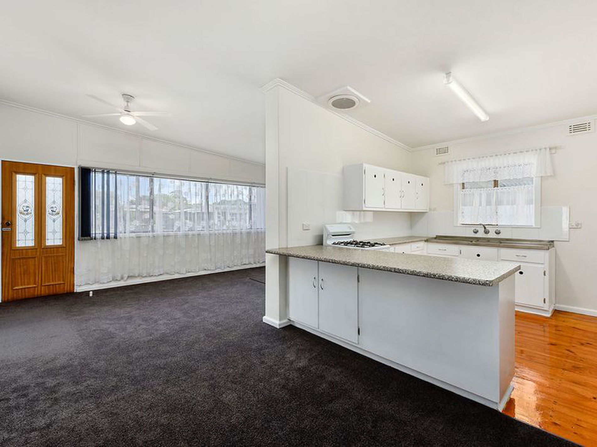 The kitchen has laminate benchtops with a convenient breakfast bar, gas cooking, and polished timber floors, while a spacious walk-in pantry provides excellent storage and a perfect spot to keep the clutter out of sight. Polished timber floors complete the space.
