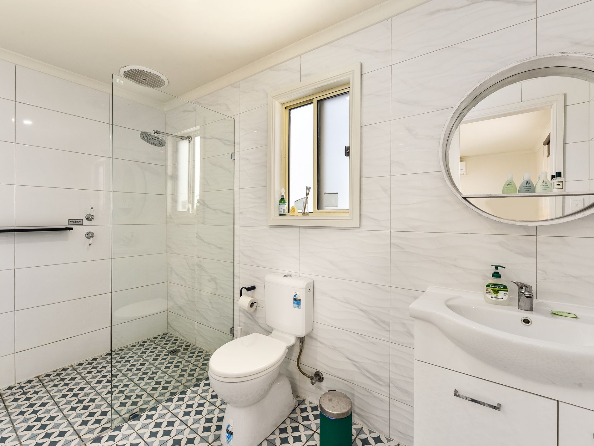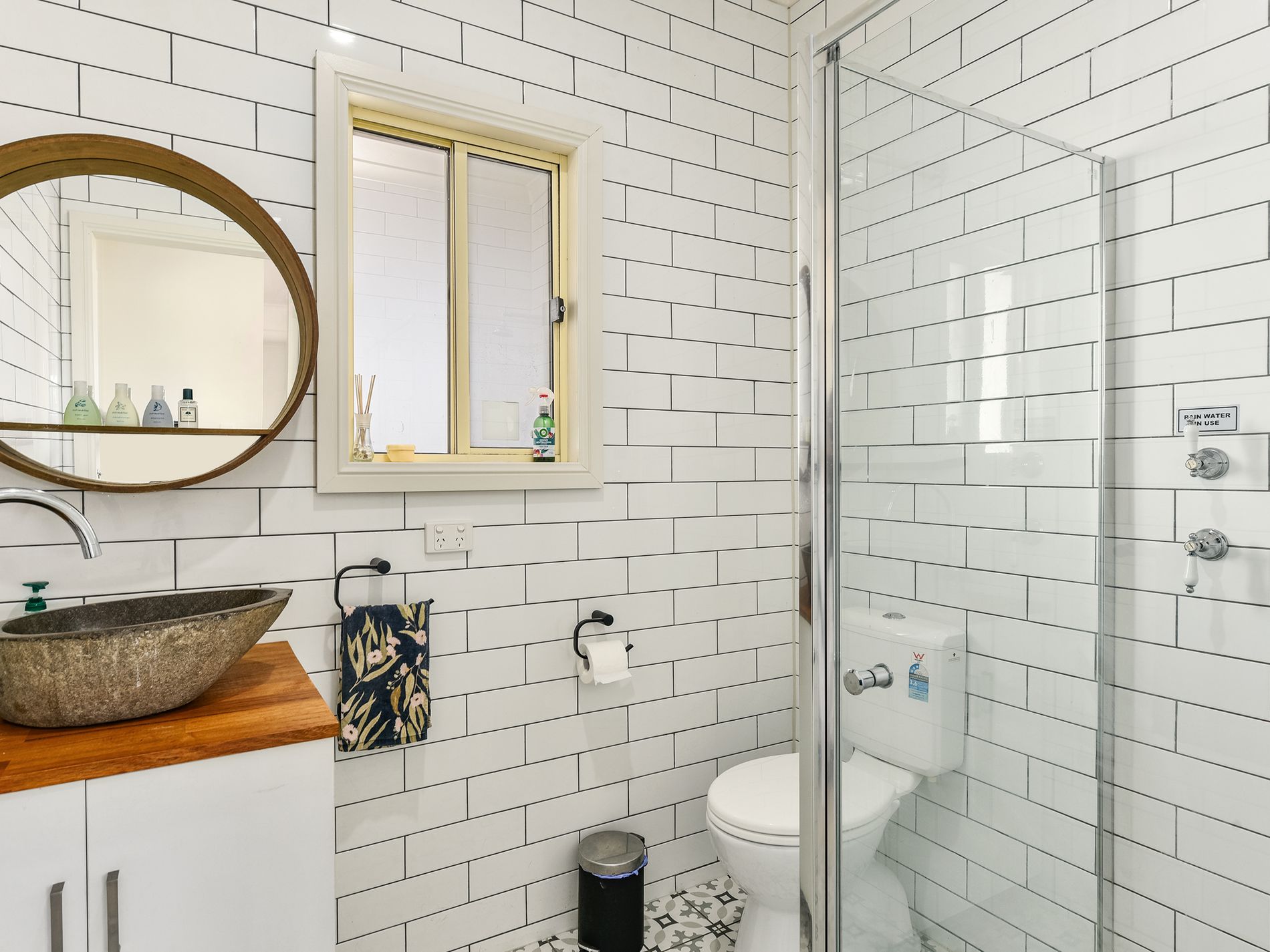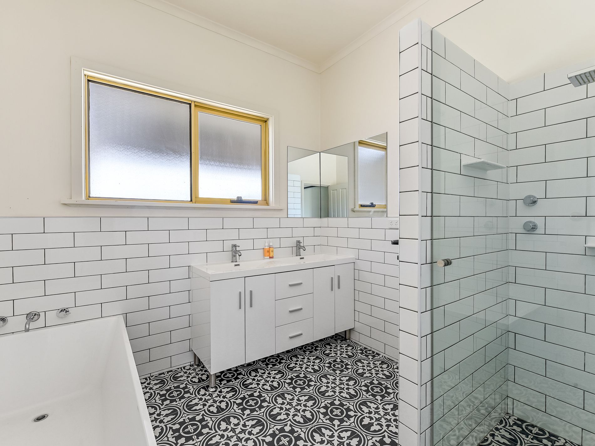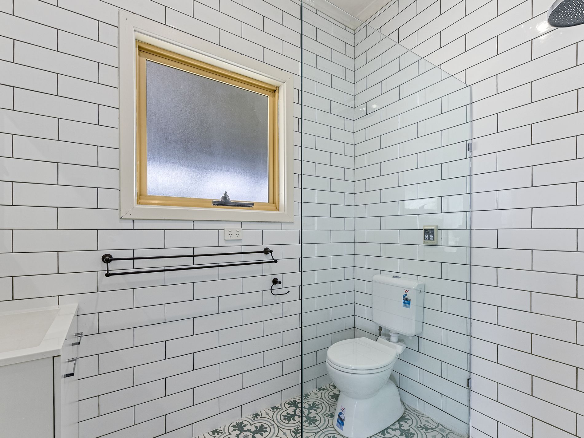 Down a small corridor near the kitchen is the master wing. Well equipped with both walk-in-robe, built in robe, and en-suite. The en-suite includes wall to floor subway tiles, classic encaustic look floor tiles, glass shower screen , shower, toilet and vanity.