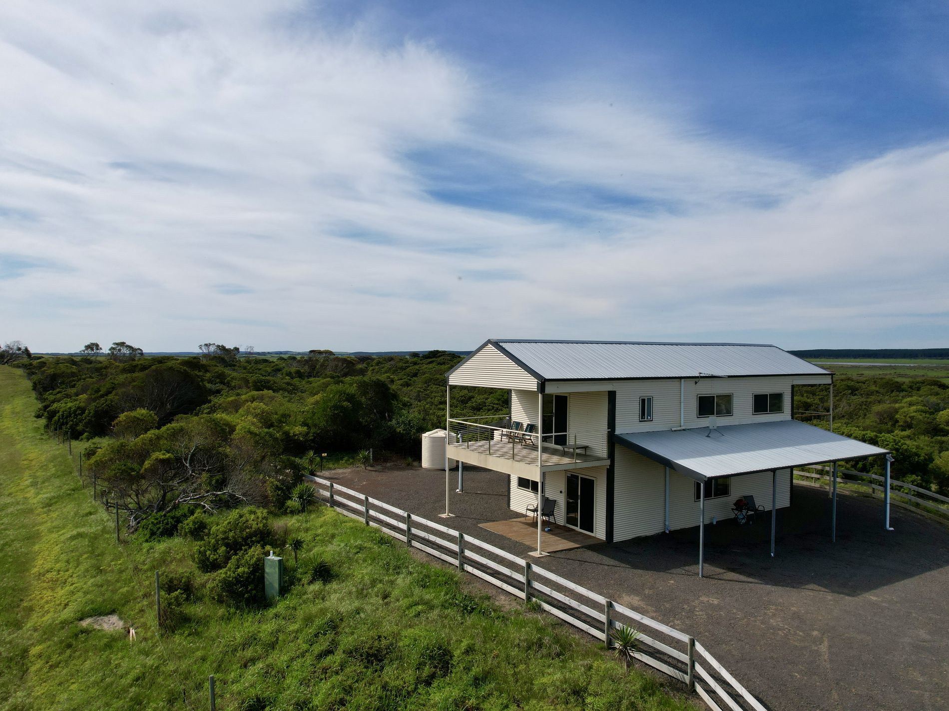 For the farmer in you, the property sits on just over 43 hectares (107 acres). Predominantly sandy loam soil across the property, the current owners have successfully grown Lucerne in the front 10ha paddocks while grazing up to 45 head of cattle across the property. The property is well fenced with 8-foot deer fencing surrounding the property. 6 open paddocks are all accessible via internal laneways and each has water points. Two ‘scrub’ paddocks also include water point and can be utilized for further grazing. A hay shed with yards can be found at the southern end of the property.