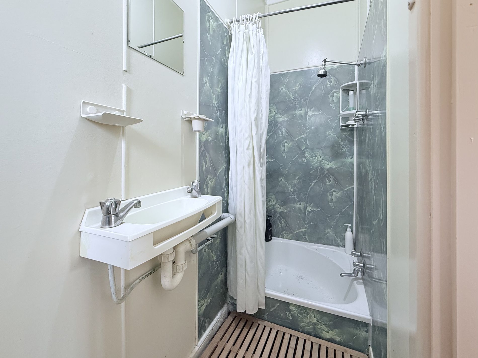 • Bathroom: Includes a shower, hand basin, and toilet for convenience.