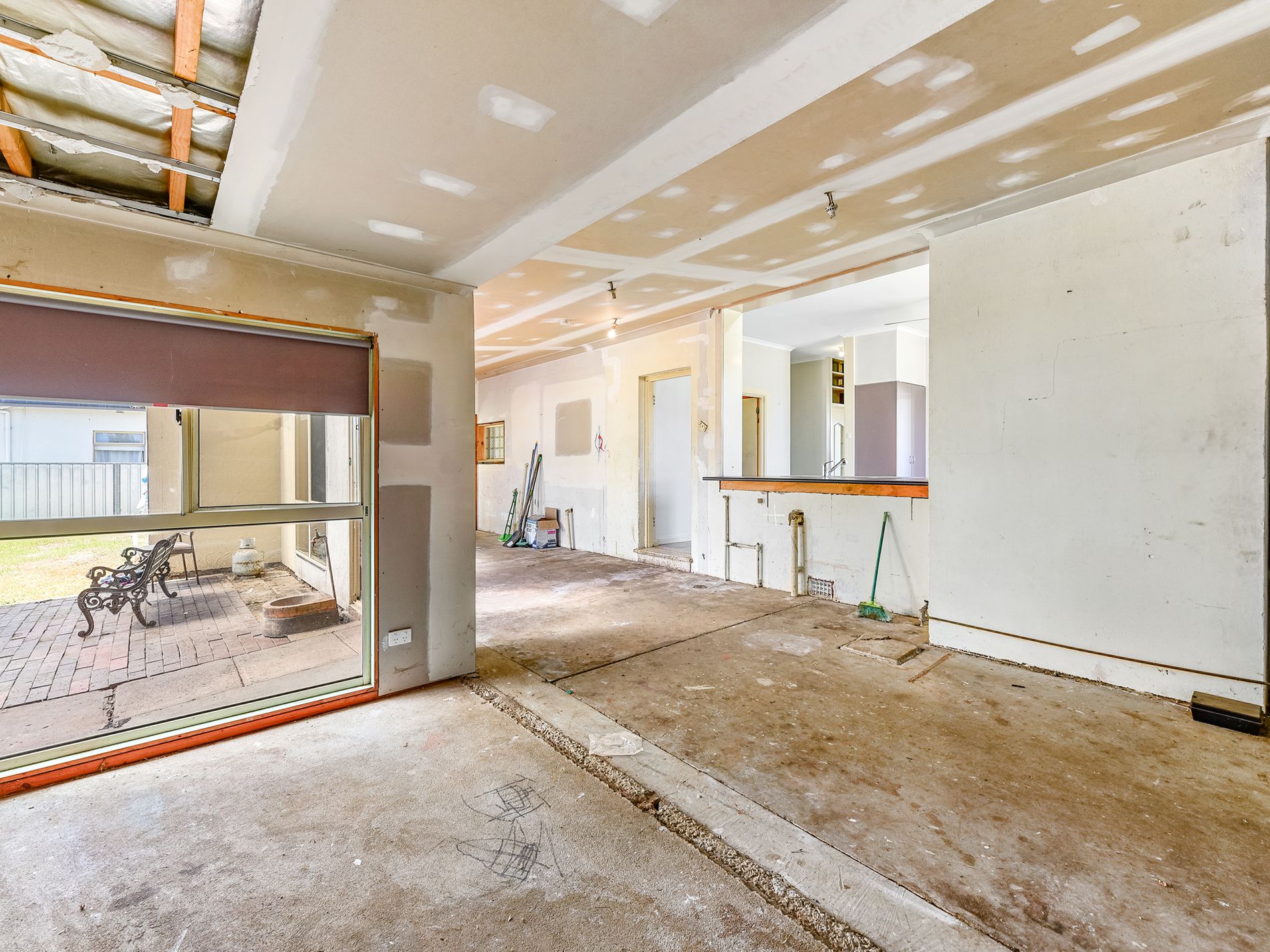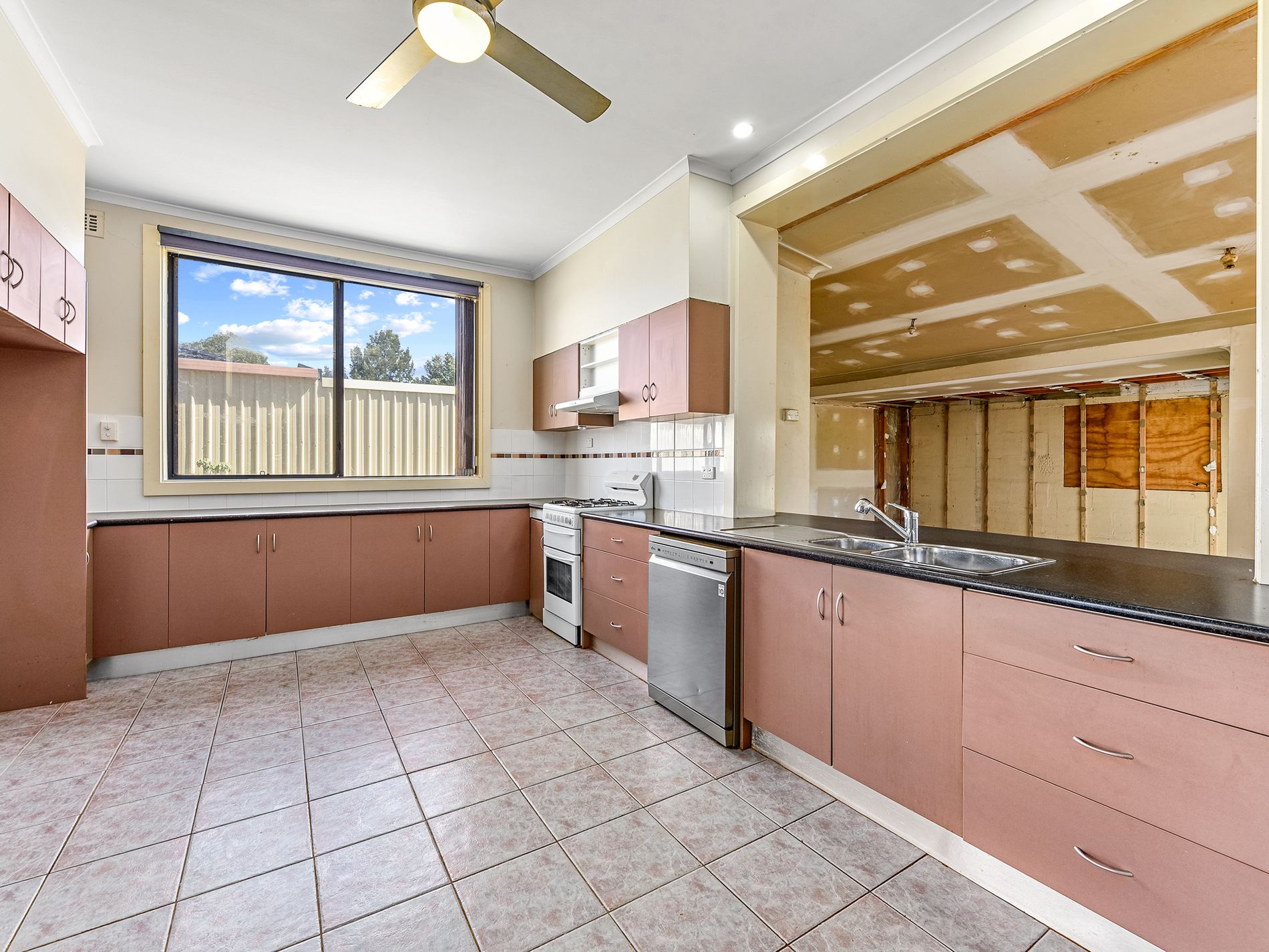 The heart of the home lies in the expansive kitchen, which opens seamlessly into the lounge area, making it ideal for family gatherings and entertaining. You’ll find three generously sized bedrooms at the front of the house, each offering ample space and natural light.