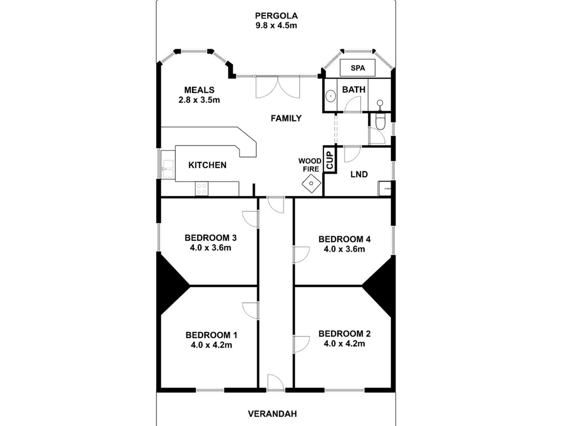 The lounge area impresses with its cozy timber bay window, ample built-in cupboards, a comforting slow combustion heater, and split-system air conditioning, providing year-round comfort.