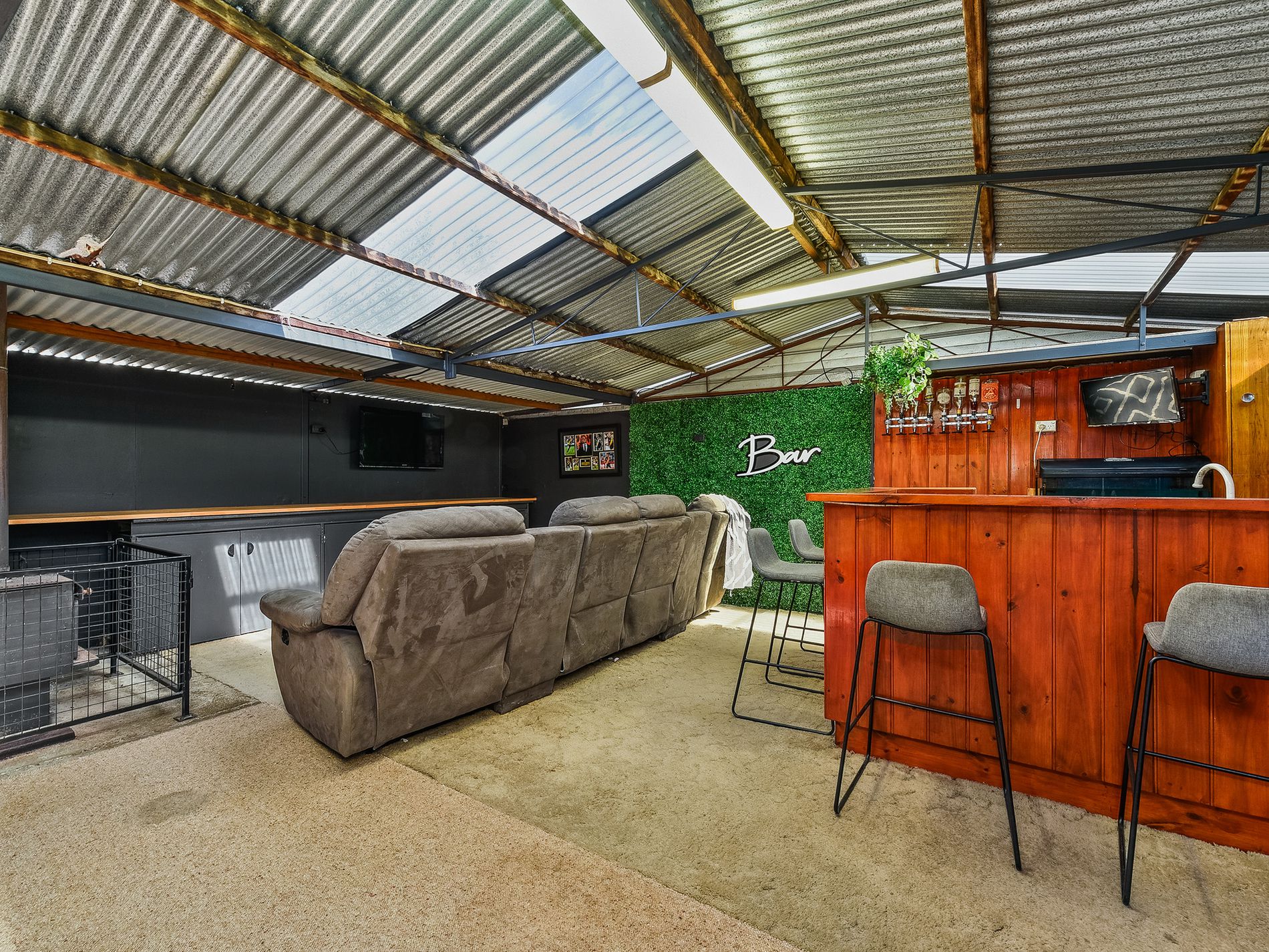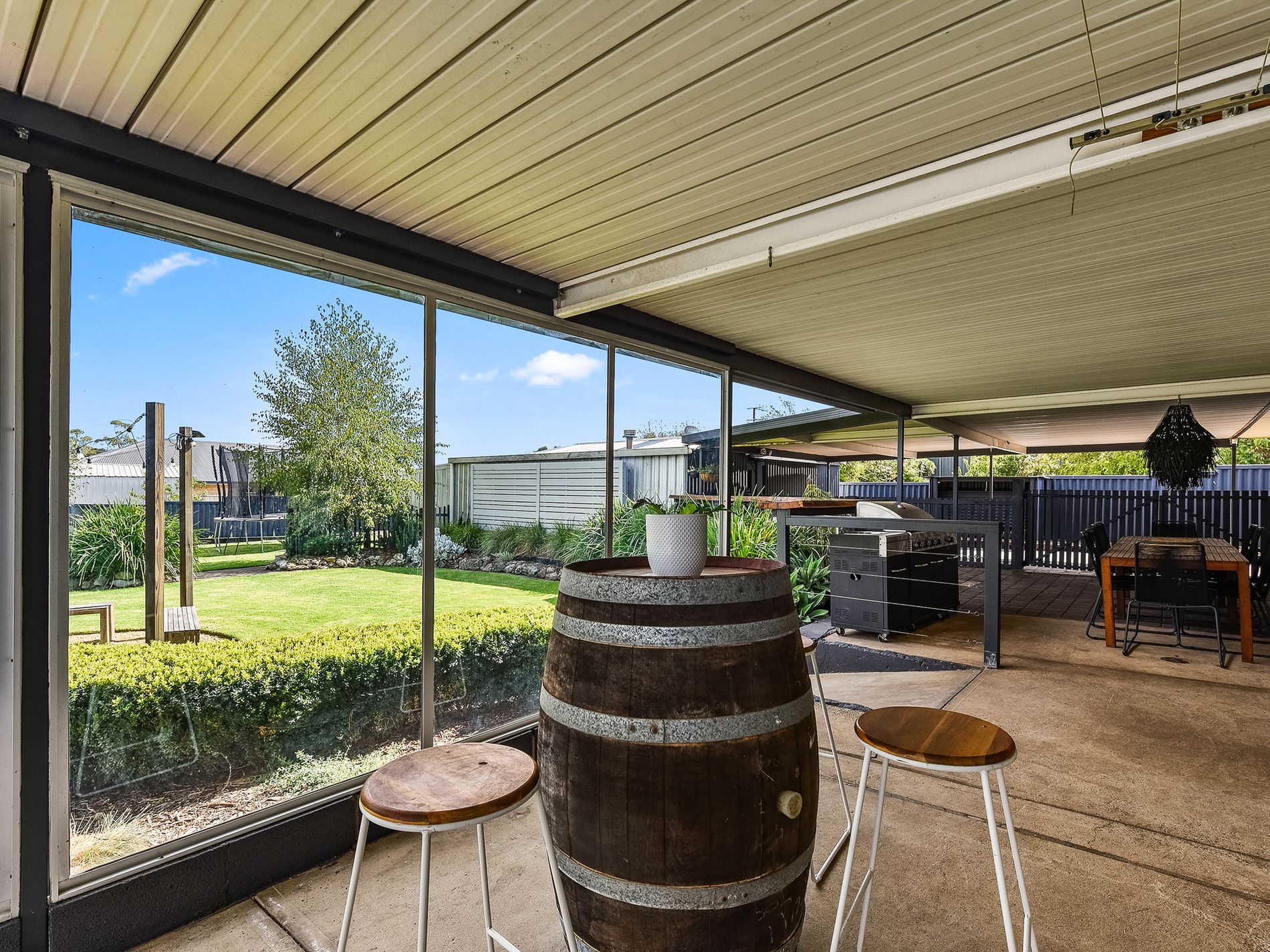 Ultimate Entertainer’s Retreat: The undercover outdoor entertaining area leads to a bar/games room complete with a combustion fire, bar, and storage cupboards—perfect for watching the footy with mates!
