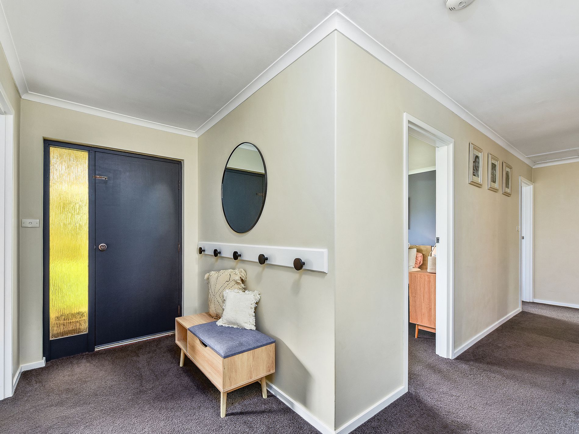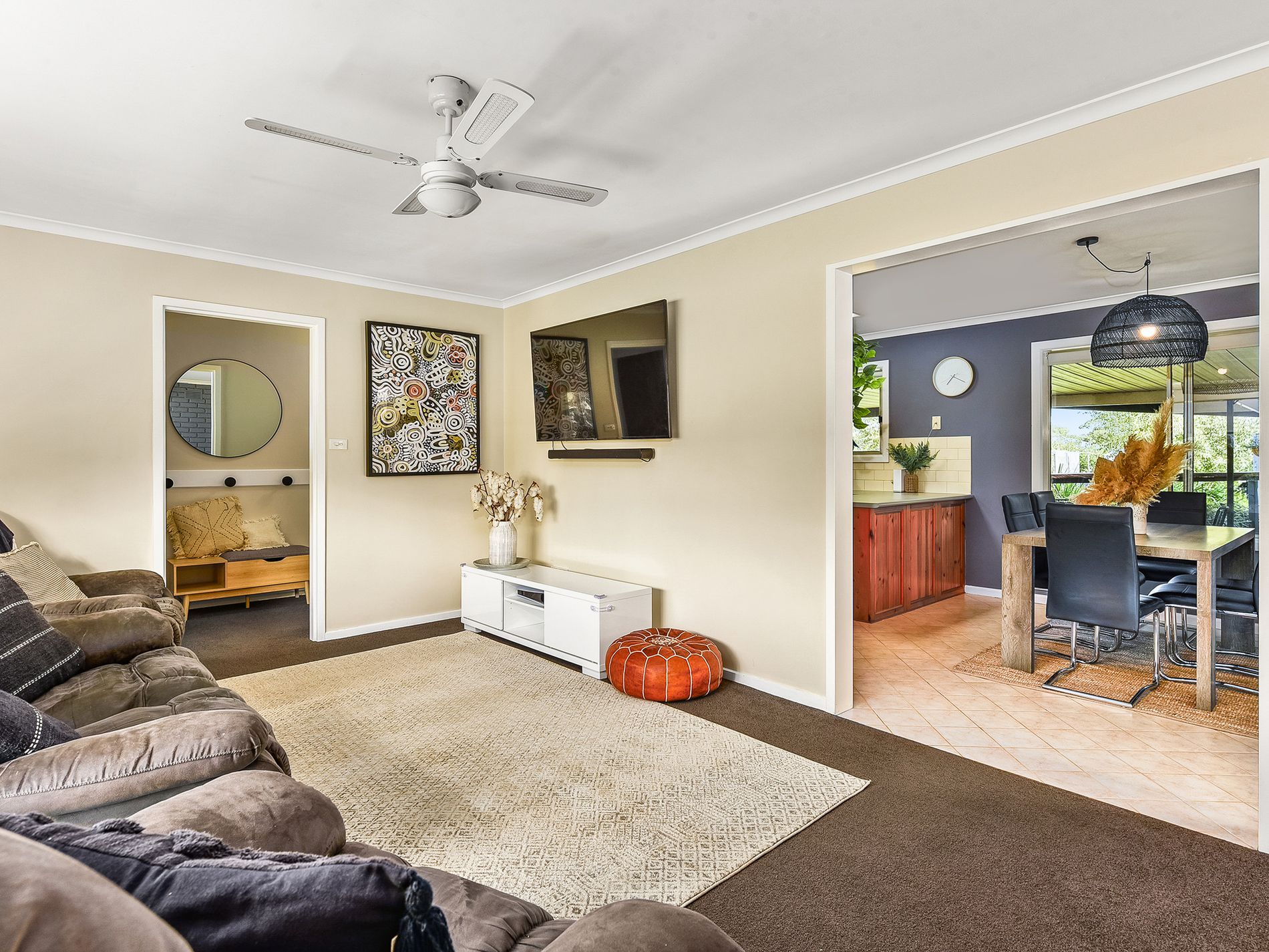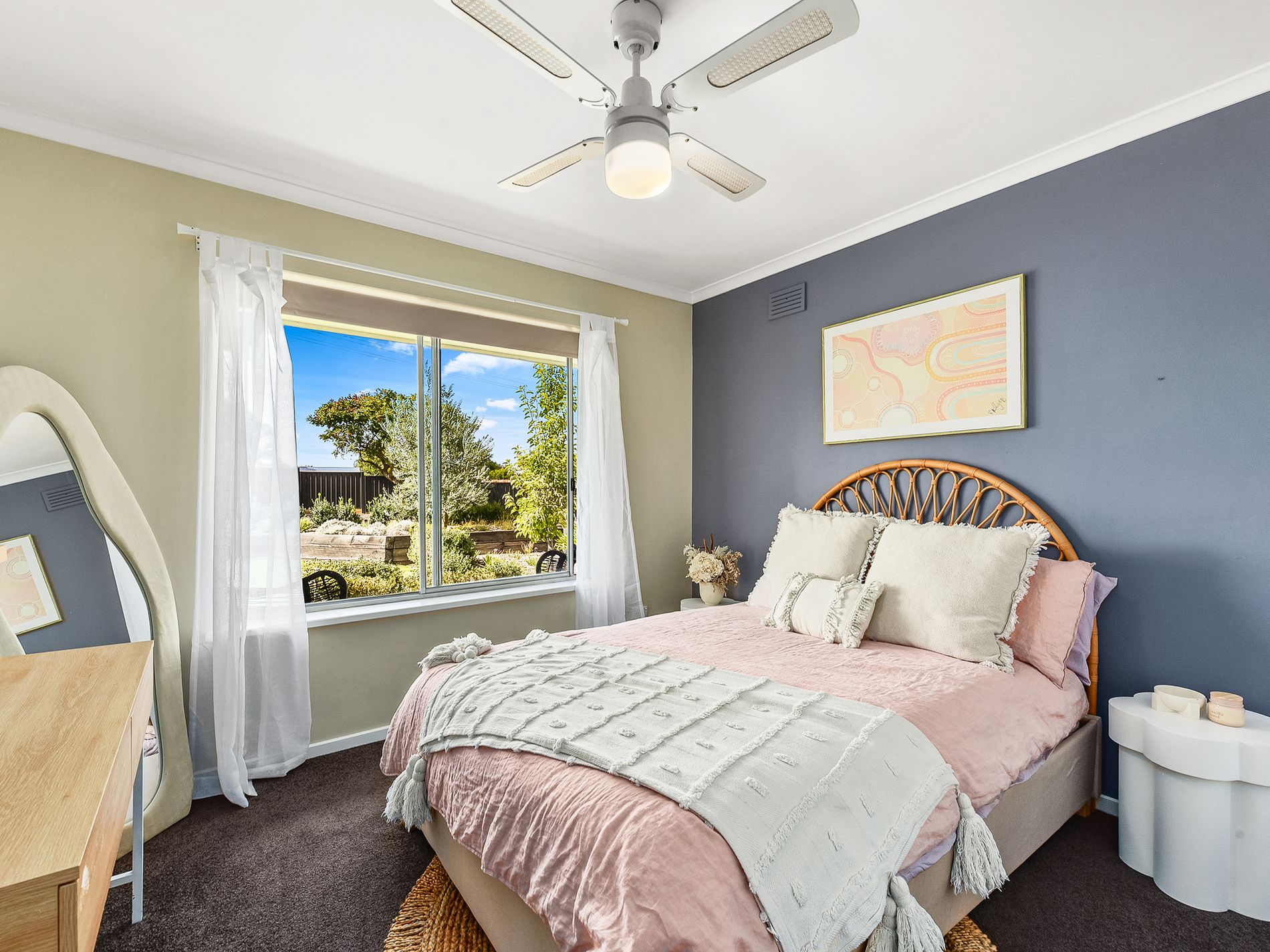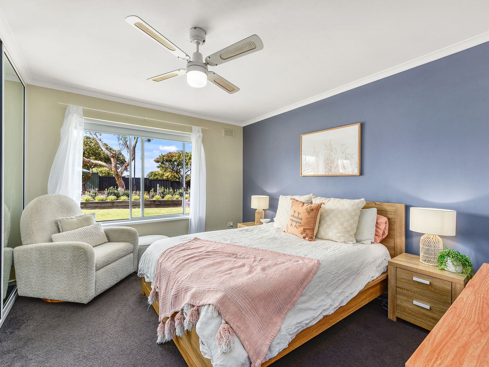 • Second and third bedrooms with built-in robes, carpet, and blinds. The second bedroom also includes a ceiling fan.