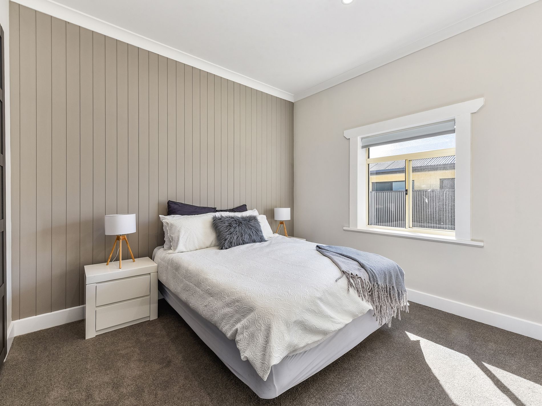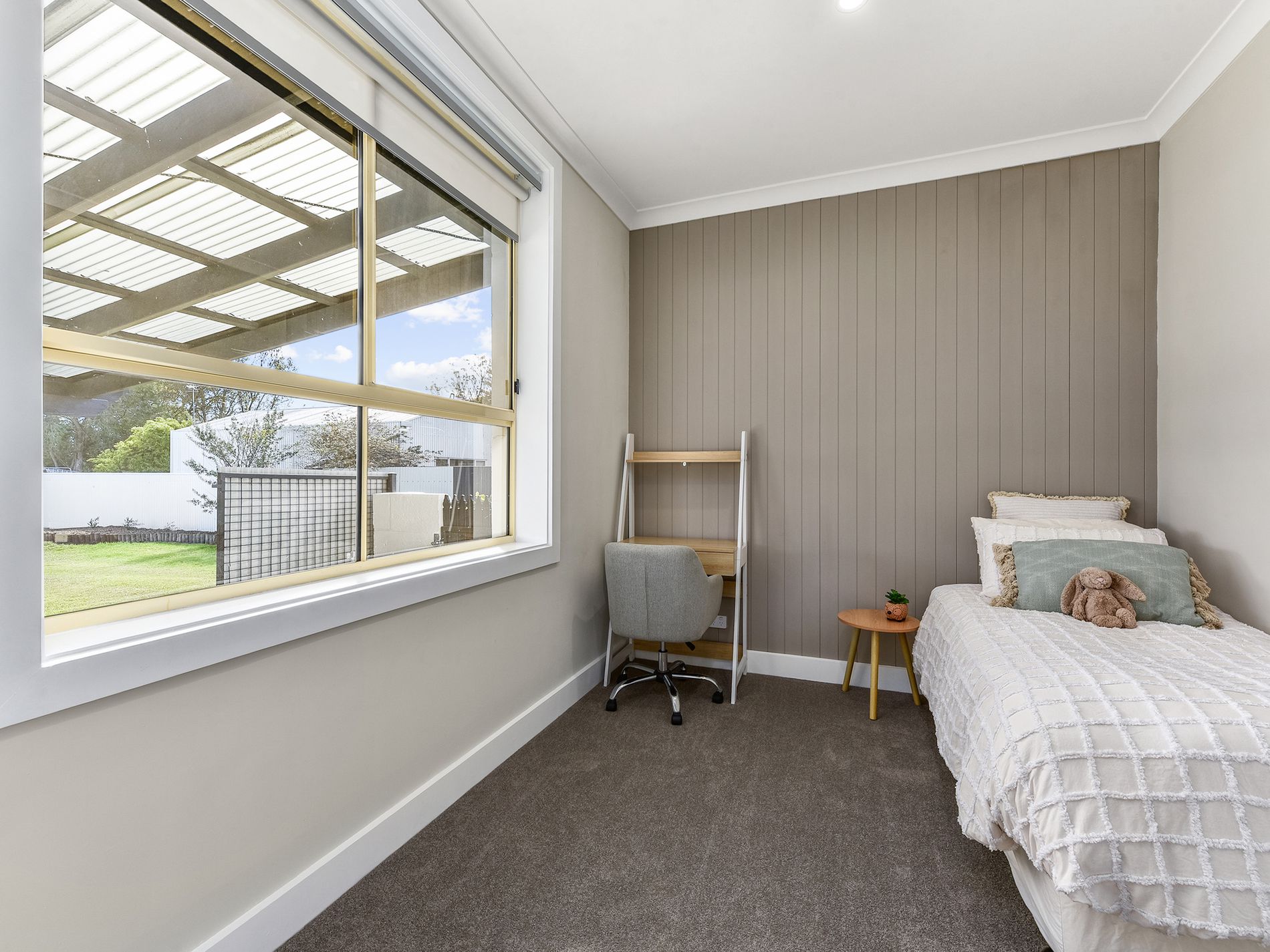 3 well-appointed bedrooms – each with plush carpet, built-in robes, feature wall paneling, and ceiling fan in the master.