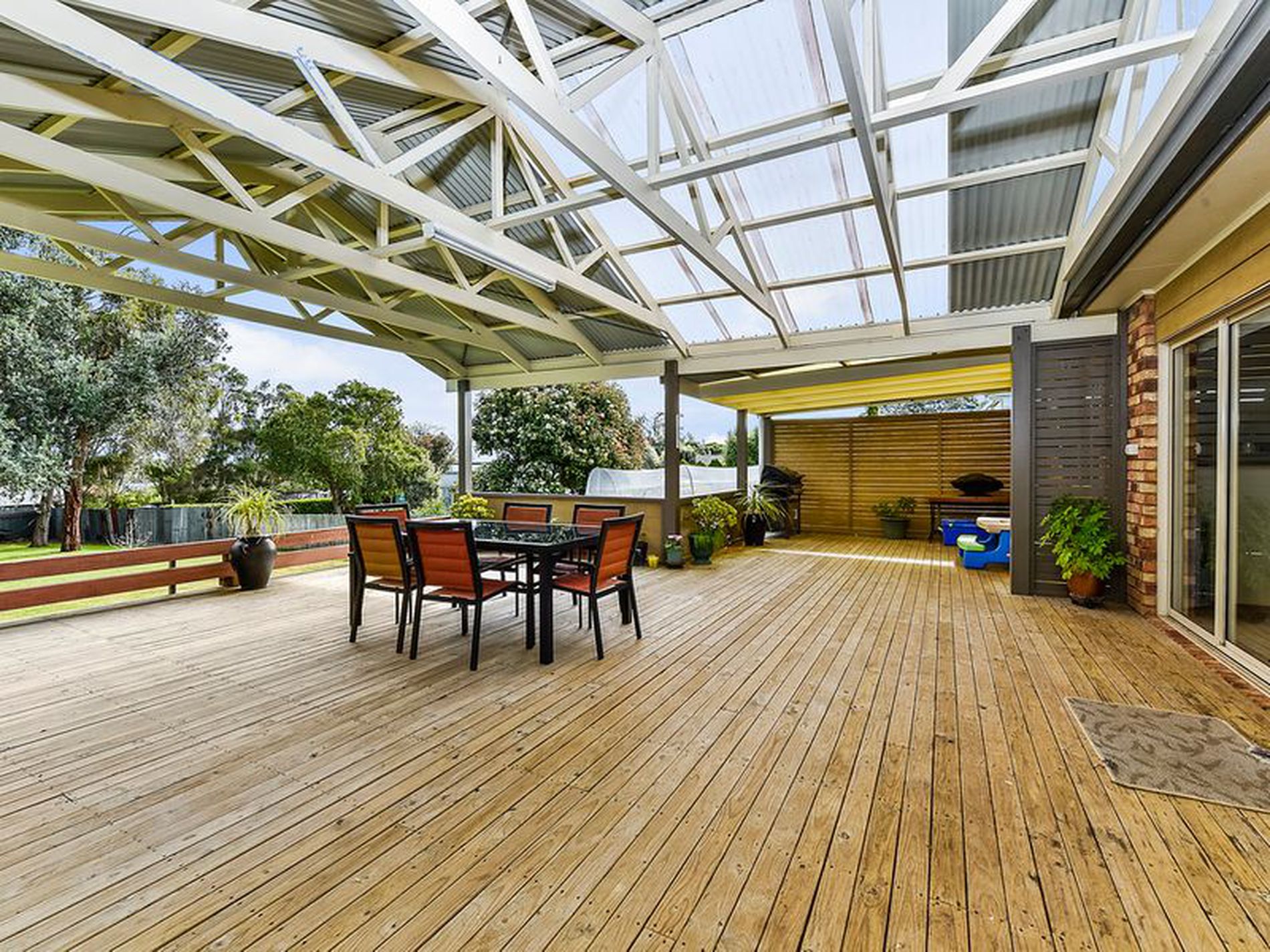 Multi stacker doors open up onto the huge decked rear patio/ pergola giving you seamless indoor/outdoor living