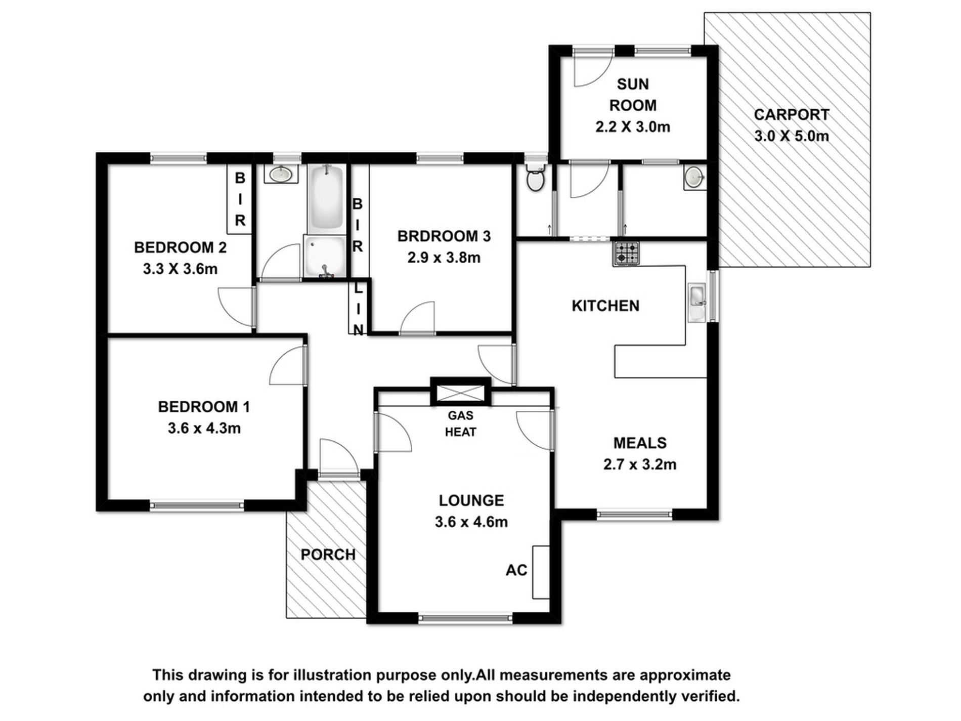 The carpeted lounge is a good size with gas heating and reverse cycle air conditioning which heats and cools the whole home.