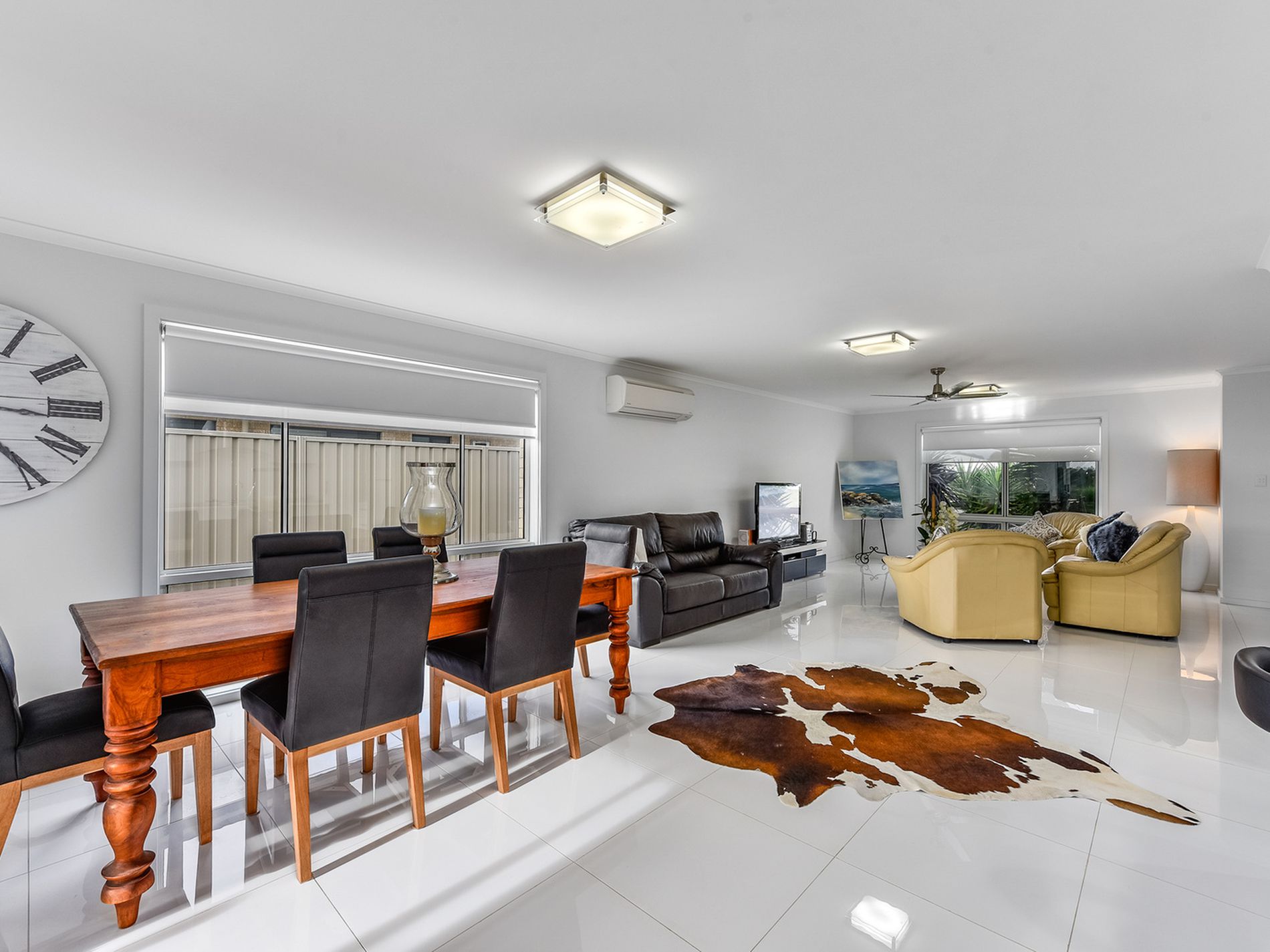 Large open plan kitchen, dining and lounge areas.