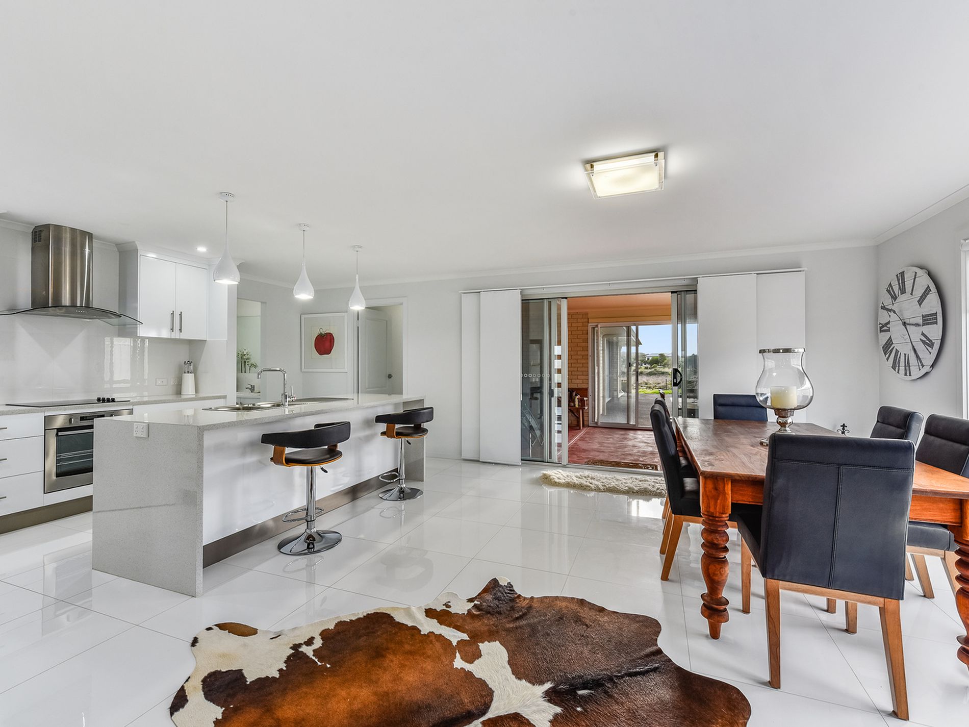 Sliding doors lead to the indoor / outdoor fully enclosed alfresco area.
