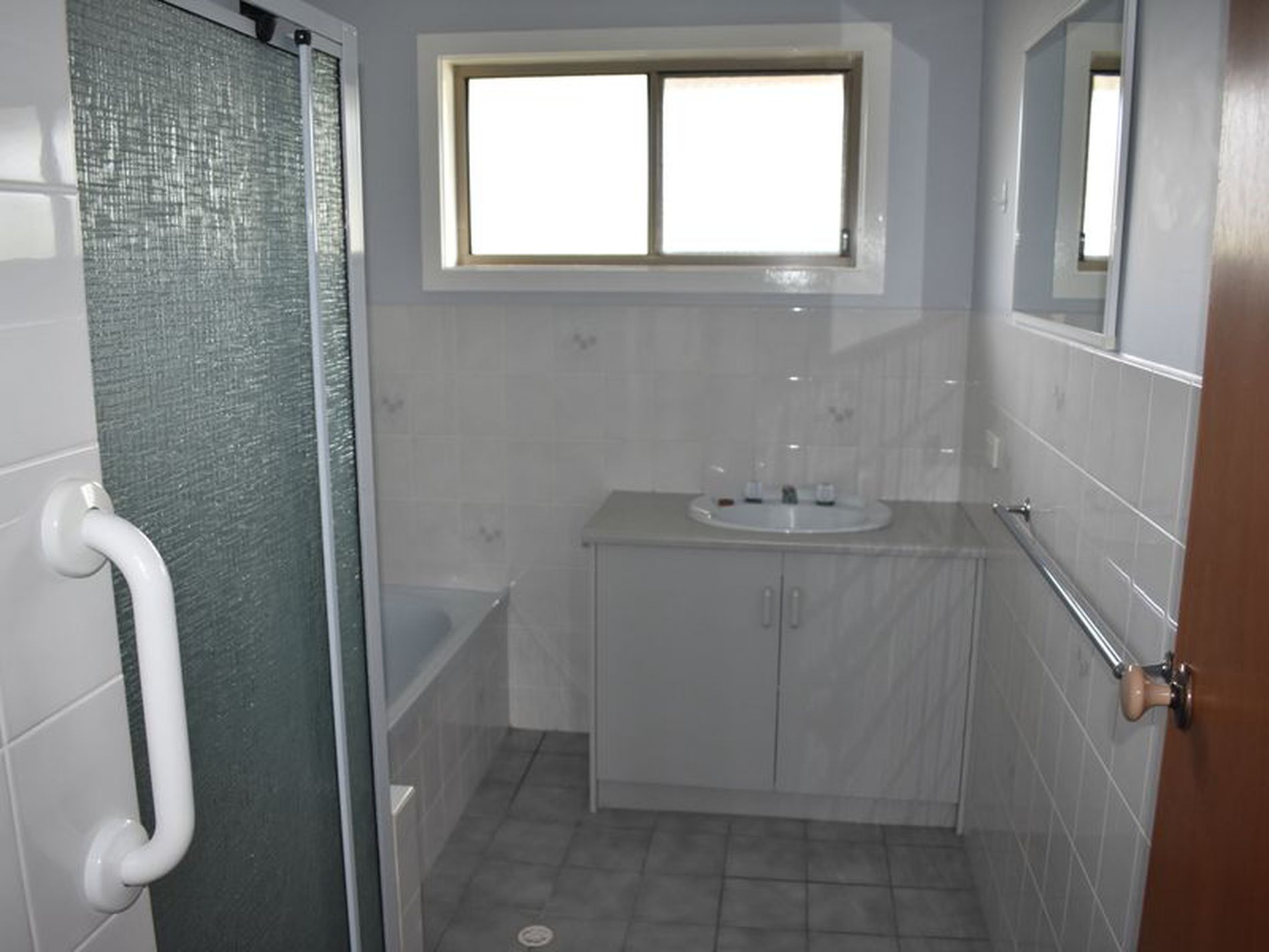 Entry through the front door leads you into the large open plan Kitchen, dining and lounge. This area is carpeted has reverse cycle air conditioning which heats and cools the whole unit and sliding doors leading out to the side courtyard garden. The kitchen has vinyl flooring, a single sink and electric cooking with bench hotplates and wall oven with separate grill. There are two generous sized double bedrooms both carpeted and with blinds. The bathroom has a separate screened shower, bath and a vanity, the toilet is also separate. There is an external door from the tiled laundry leading out to the small rear garden.