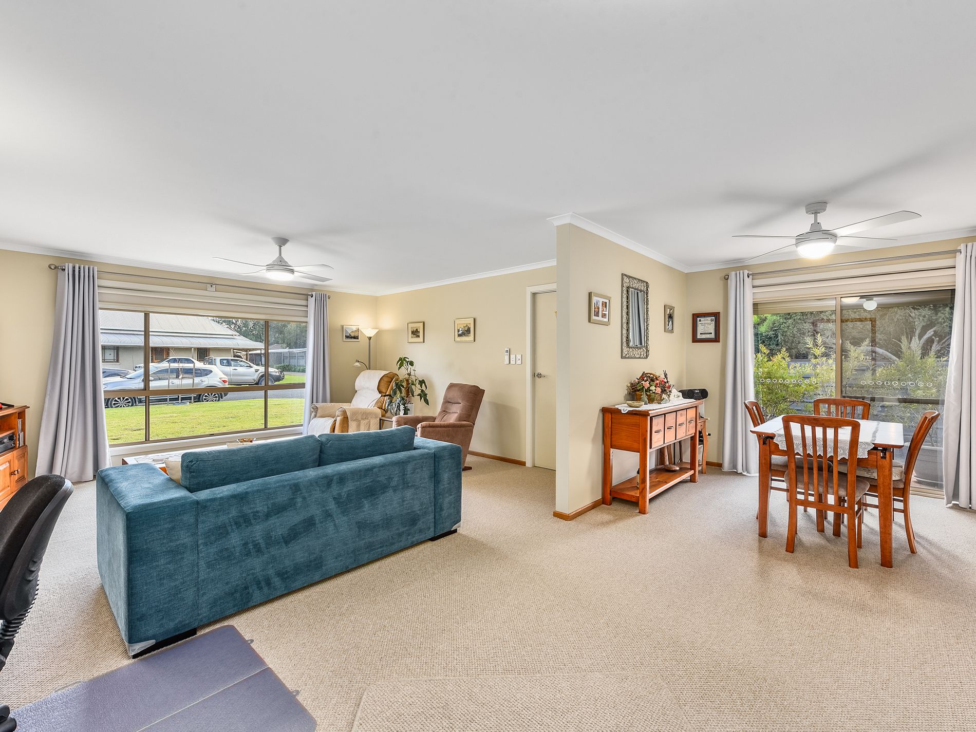 Step inside to a spacious open-plan living area with new carpet throughout the lounge and dining space. Comfort is assured year-round with reverse cycle air conditioning, a ceiling fan, and day/night blinds throughout. There's also sliding door access from the driveway for added convenience.