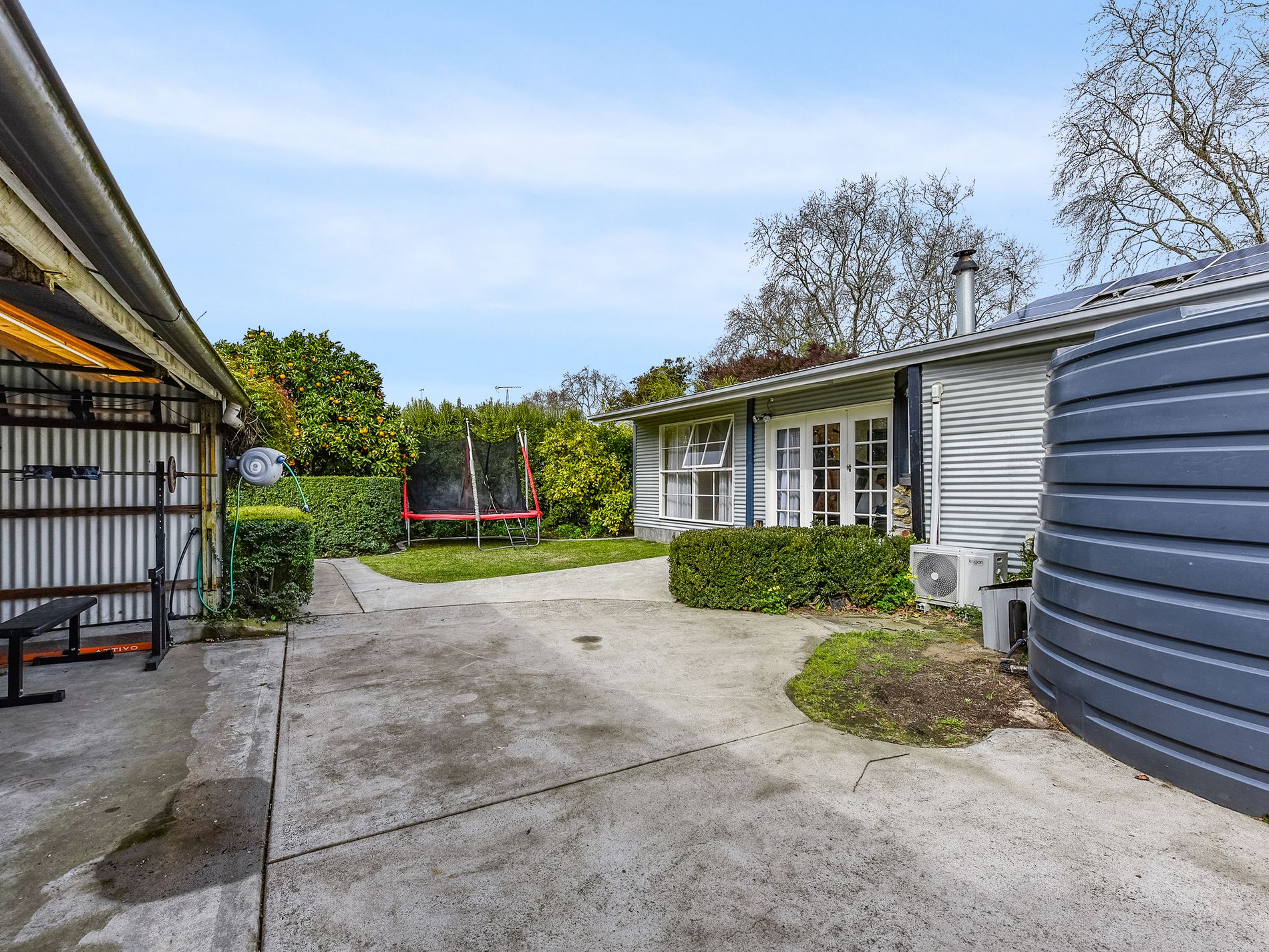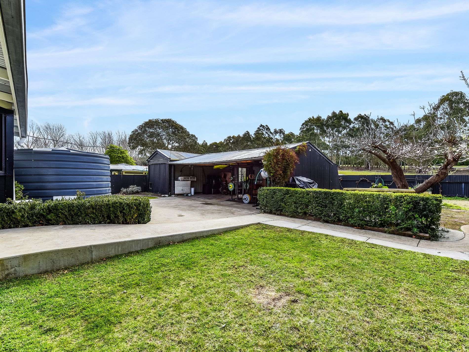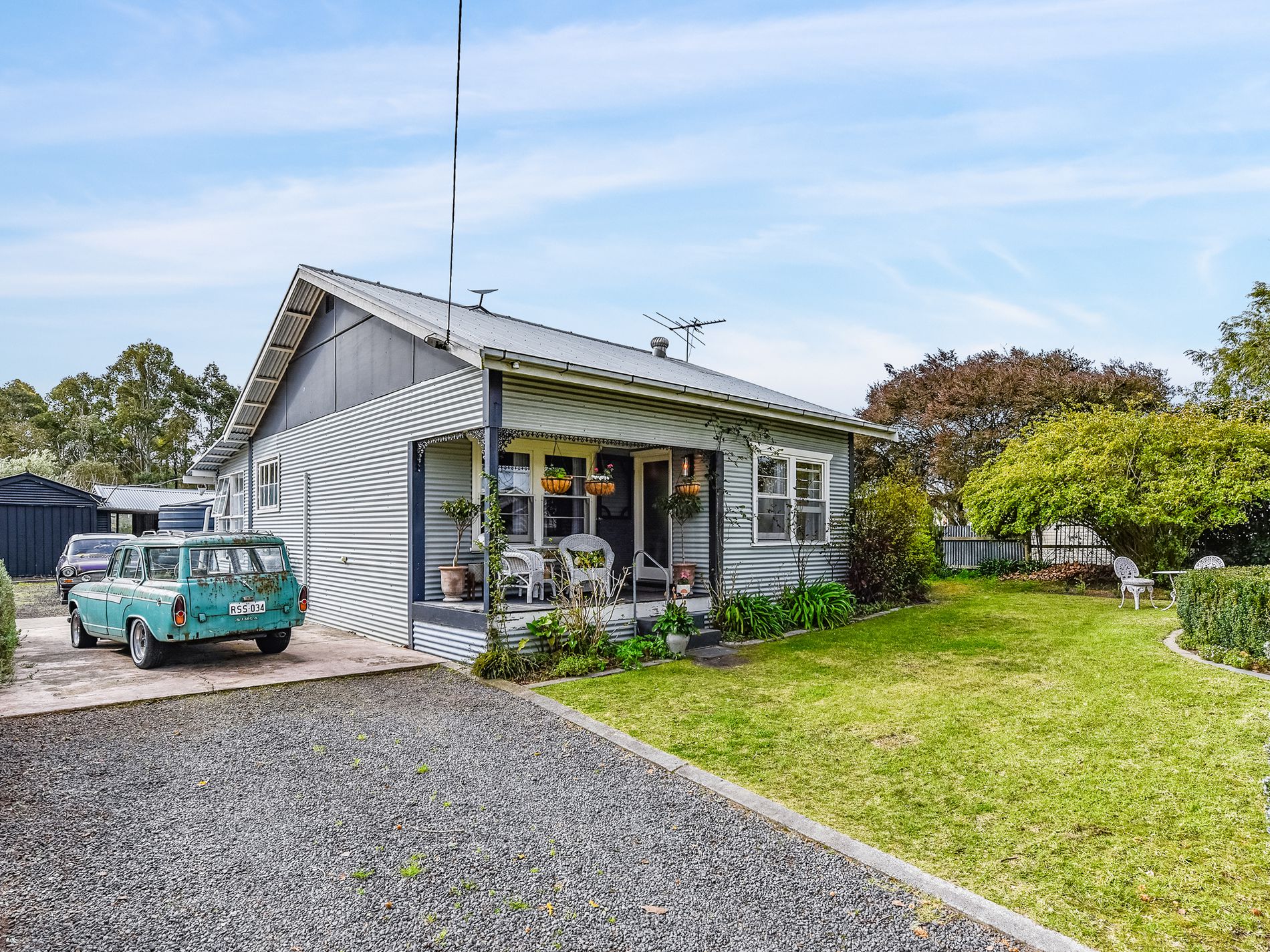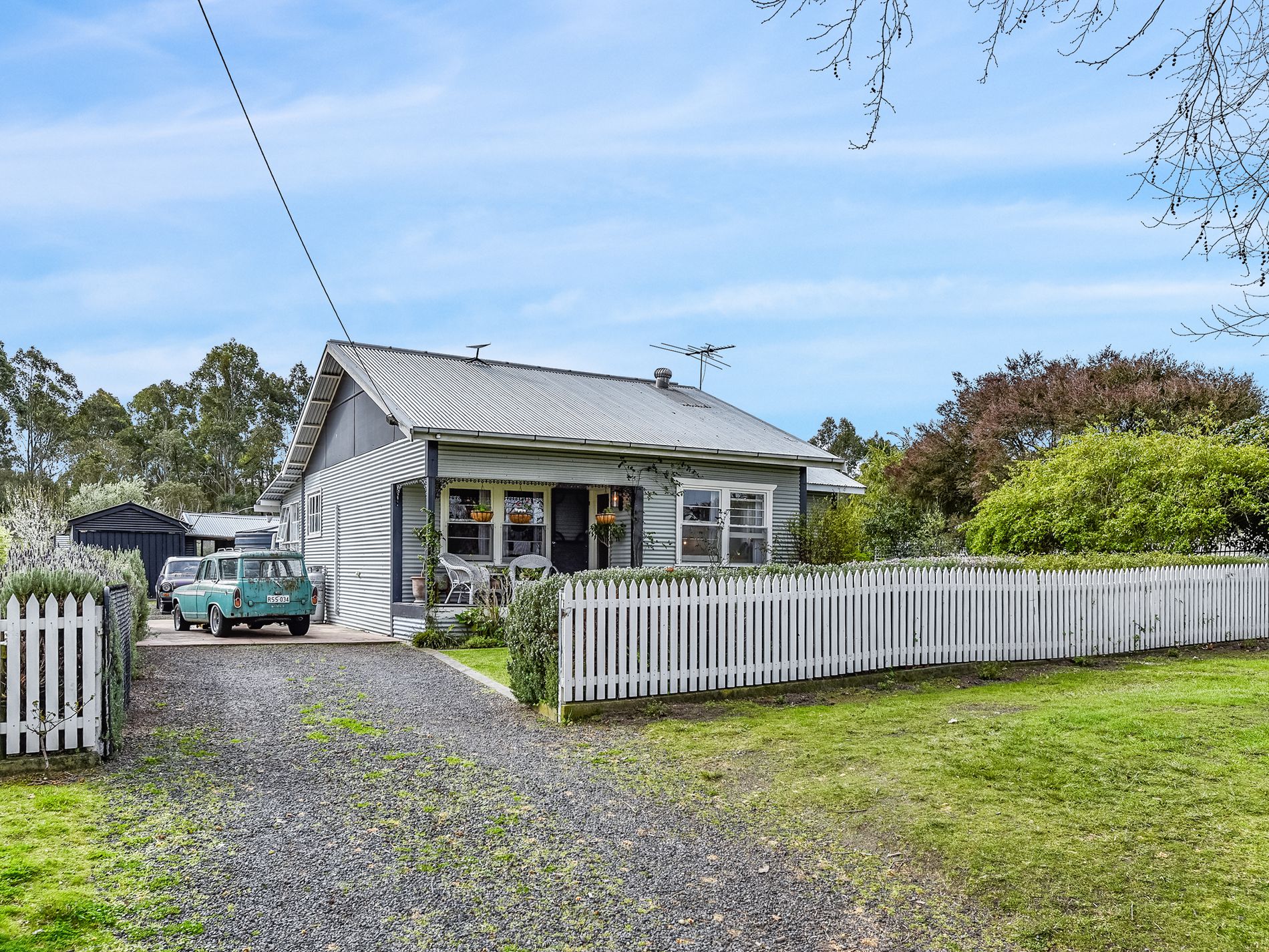 The beautifully landscaped front garden welcomes you with fragrant lavender hedging and a water feature, creating a soothing ambient sound of flowing water, birds and rustling leaves. The side driveway provides ample space for multiple vehicles and offers access to the landscaped rear yard. There, established trees, hedging, and fruit trees create shady spots perfect for relaxing and hosting outdoors. A single lockable shed has a second toilet, along with three open-fronted bays with cement floors and power, providing excellent storage and workshop options. For the gardening enthusiast, raised garden beds and plenty of space is ready for planting and outdoor living. A woodshed At the rear of the block keeps the firewood dry.