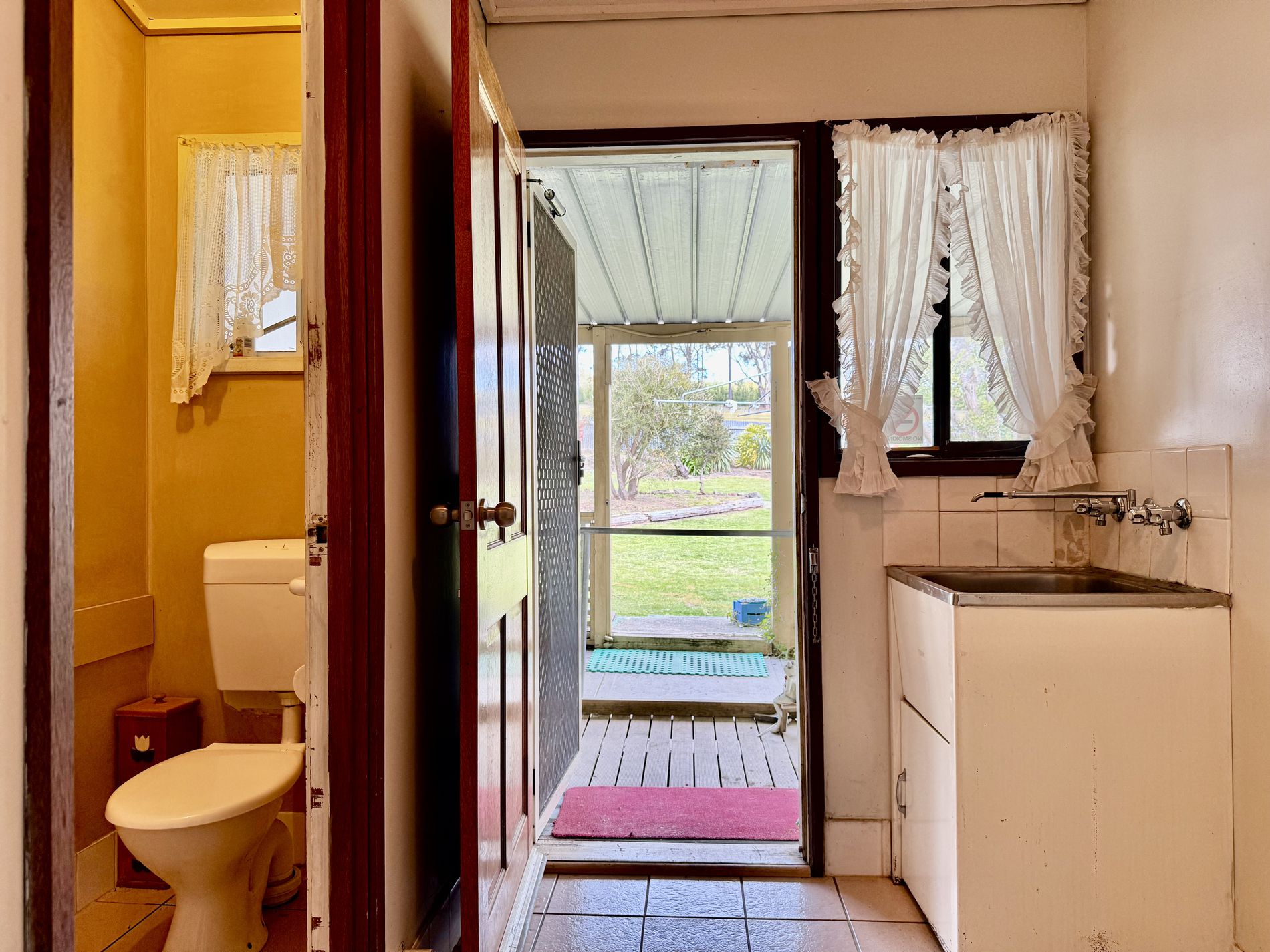 Inside, you’ll find three carpeted bedrooms, with the master featuring built-in robes and a reverse cycle air conditioner. The spacious front lounge provides plenty of room to relax, complete with both reverse cycle air conditioning and a gas heater. The well-appointed kitchen offers ample storage, a freestanding electric oven, and overlooks the adjoining dining area. A central bathroom includes a separate shower and bath, vanity, and a two-way toilet, while the laundry provides direct rear access.