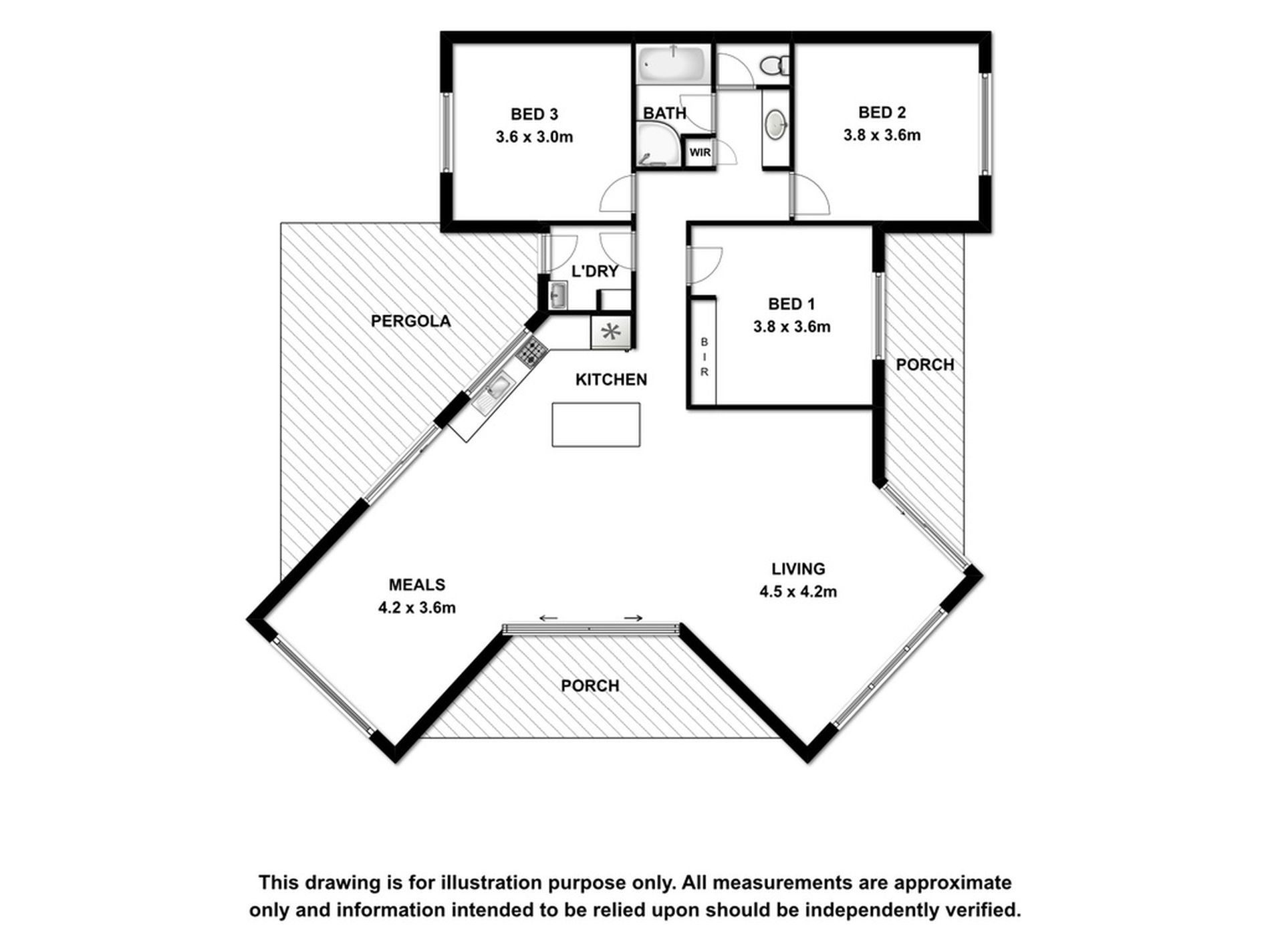 The open plan kitchen, dining, living is huge with three sets of sliding doors opening out onto the verandah and pergola, this whole area has easy care timber look vinyl flooring. The well-appointed kitchen has an island bench, ample cupboards, electric under bench oven and ceramic hotplates, range hood, double sink and dishwasher for your convenience.