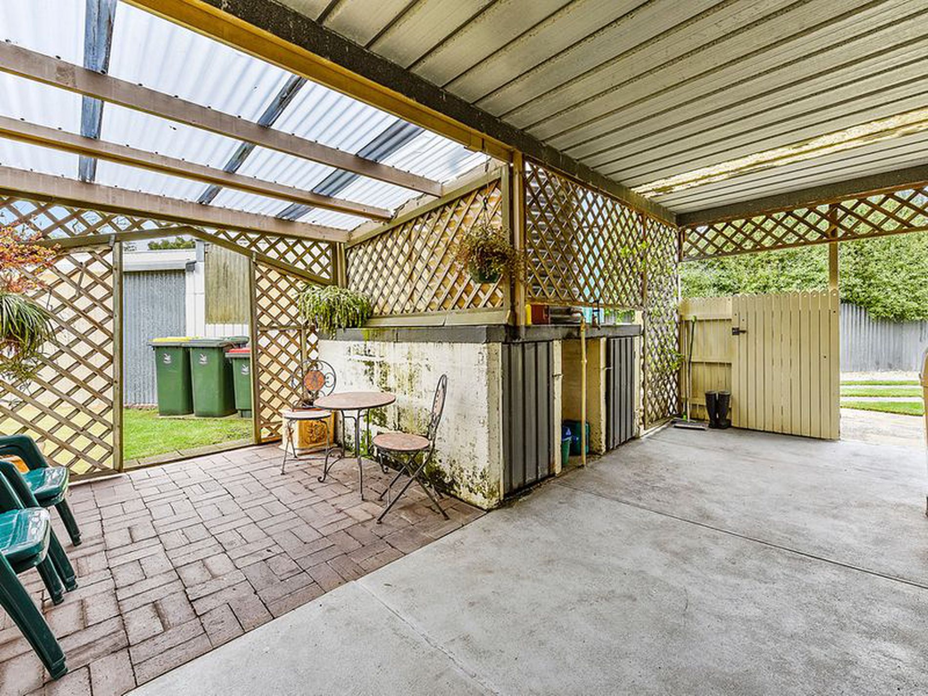 There is a sunroom across the rear of the home and through a sliding door and there is a paved, undercover, semi-enclosed pergola.