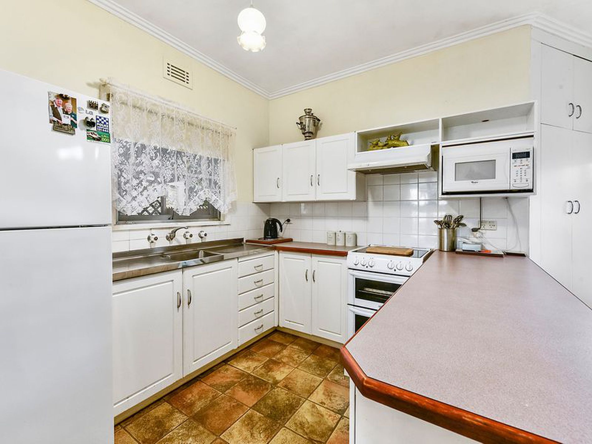 Outside the grounds have lovely established garden beds and the yard is fully fenced. There is a single car garage with roller door and adjoining workshop with cement floor, power and some built in benches.