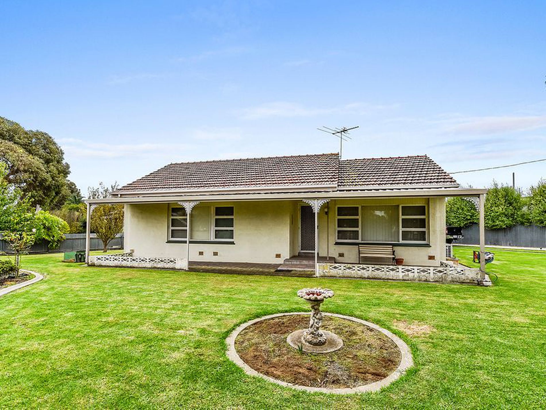 A wide front verandah runs the full length of the home, it is paved and overlooks the established gardens.