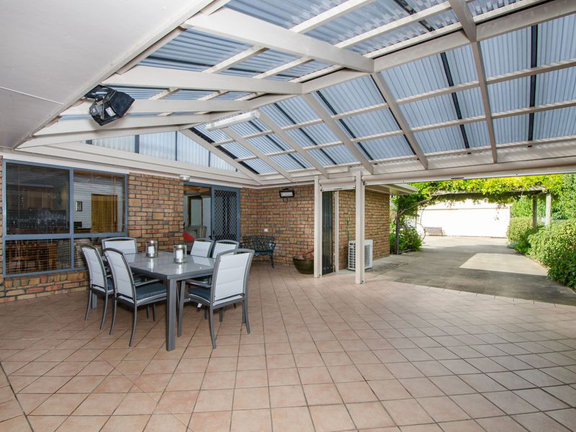The huge semi enclosed tiled pergola is a whole other living space with Beltex blinds, tiled floor, two heaters and a ceiling fan it can be utilised year round.