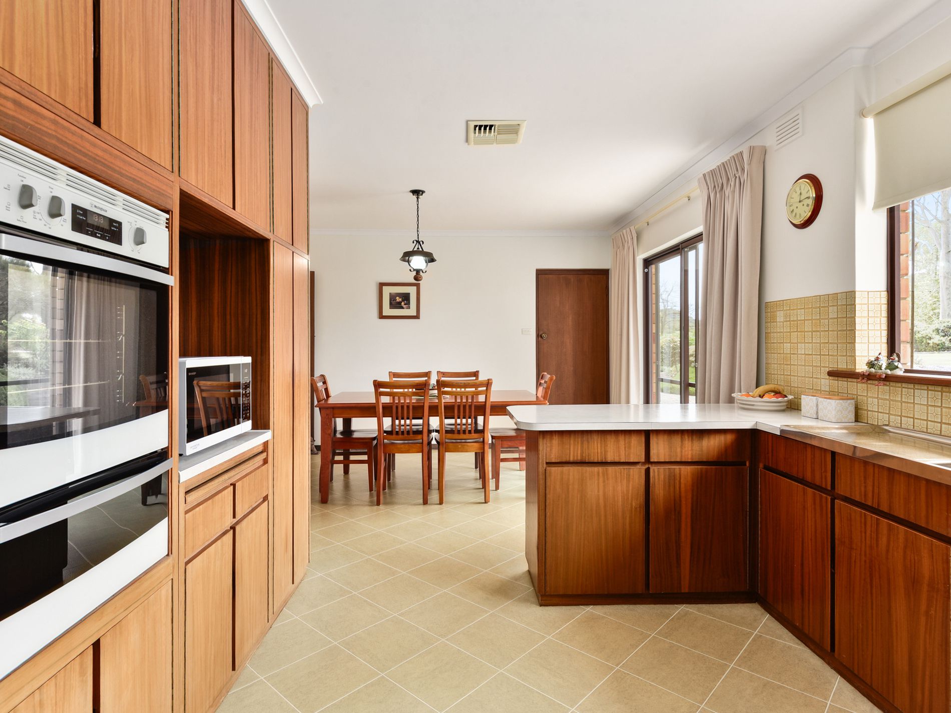 Flowing through, you’ll find the open-plan dining and kitchen area, perfectly positioned at the heart of the home. The kitchen is both functional and inviting, featuring an electric oven and cooktop, breakfast bar, and lovely views overlooking the rear yard.