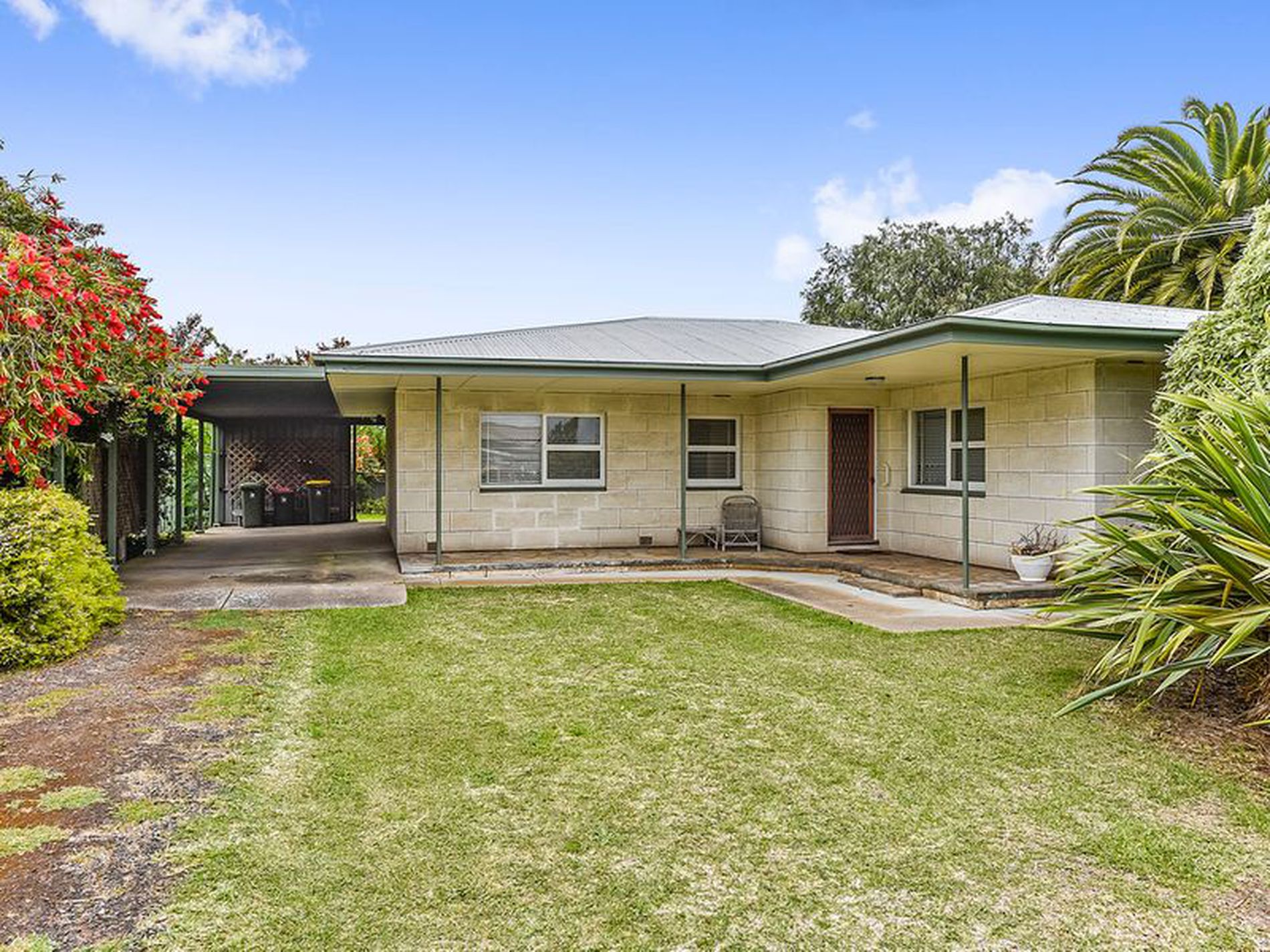 Carport attached to the home with a Single galv garage and garden shed