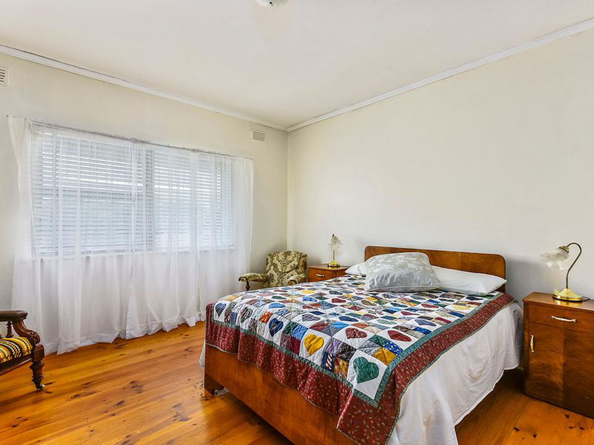 3 Bedrooms, 2 timber flooring which are Queen sized with blinds. 3rd carpeted