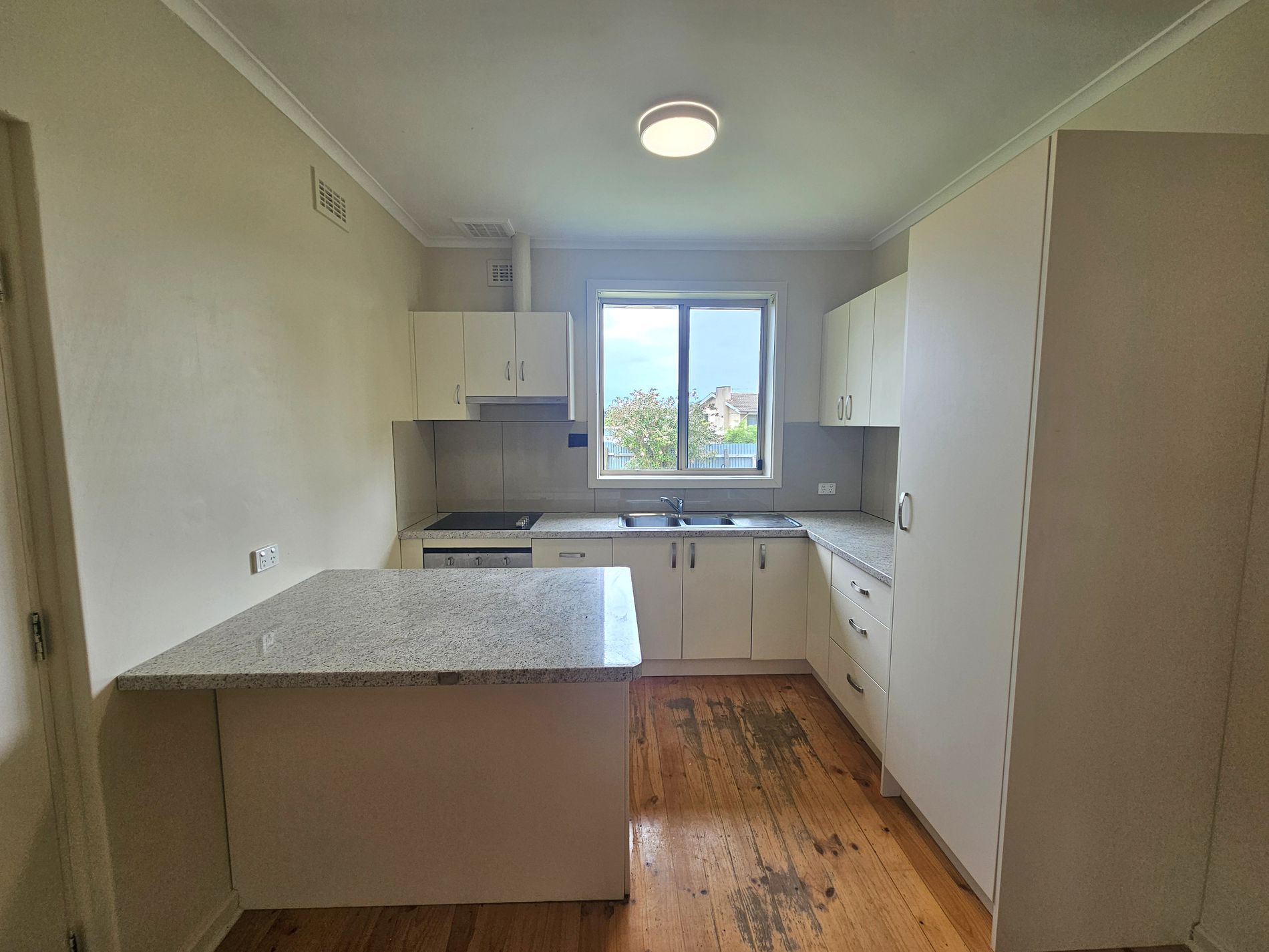 The modern kitchen is equipped with electric cooking and offers ample space for meal preparation.
