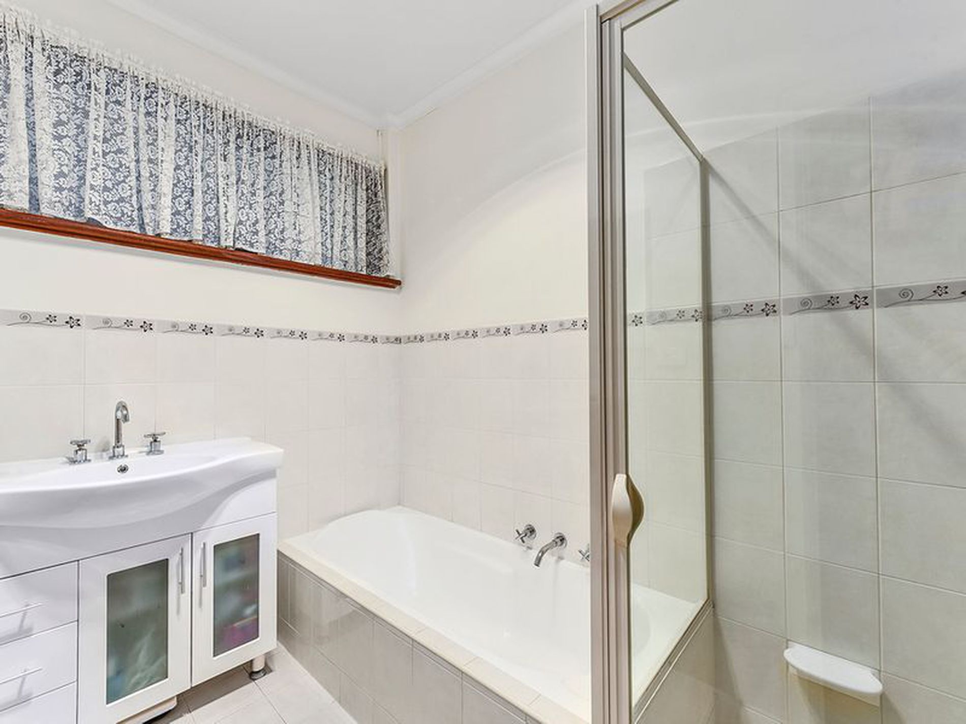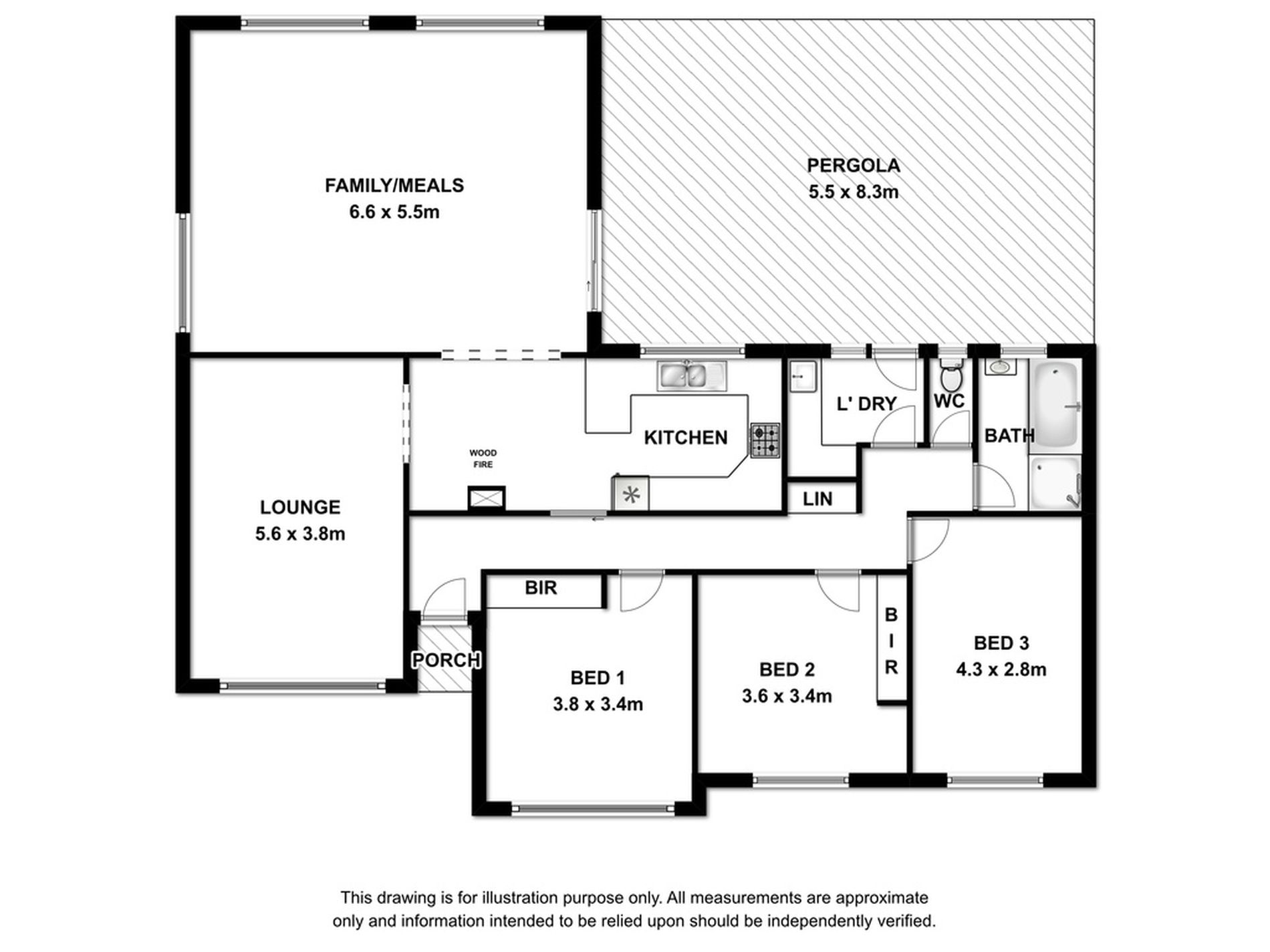 The bathroom has been updated with neutral tiles and separate bath and shower large vanity with storage and a separate toilet. The laundry is modern with ample built in cupboards and a rear door out to the pergola.The pergola is huge and adds another living space to the home . It is paved, semi enclosed and has roll down track blinds and a lush feature garden bed.