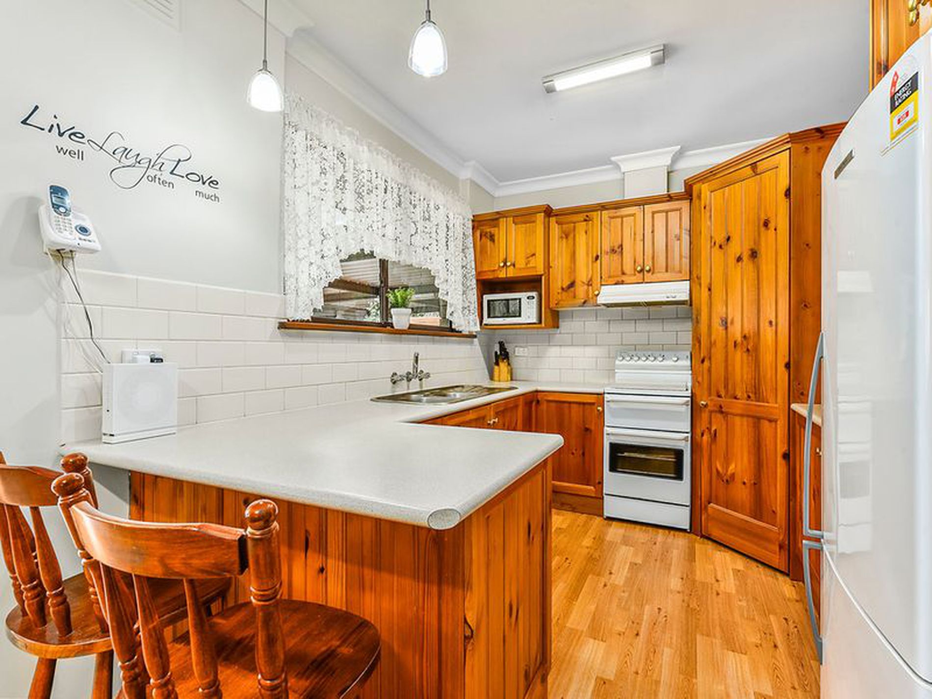 The home itself has so much space for the family. Walk through the front door into a small carpeted entry, to your left is a door to the formal lounge, to your right you enter the the main living area and down a passage you have the bedrooms, bathroom and laundry. The formal lounge is carpeted , has curtains as well as roller shutters on the front window and opens into the kitchen/ dining/ living area. The large rumpus/dining room at the rear of the home has easy care timber look vinyl flooring, day/night blinds and also has a large reverse cycle air conditioner. There are sliding doors leading inside from the semi enclosed 2 car carport and also sliding doors leading out to the huge pergola area. This area of the home is a fantastic space to entertain and spacious enough for the biggest of family gatherings. The neat timber kitchen is open to this area it also has timber look vinyl flooring , electric cooking , with range hood, pantry and double sink.