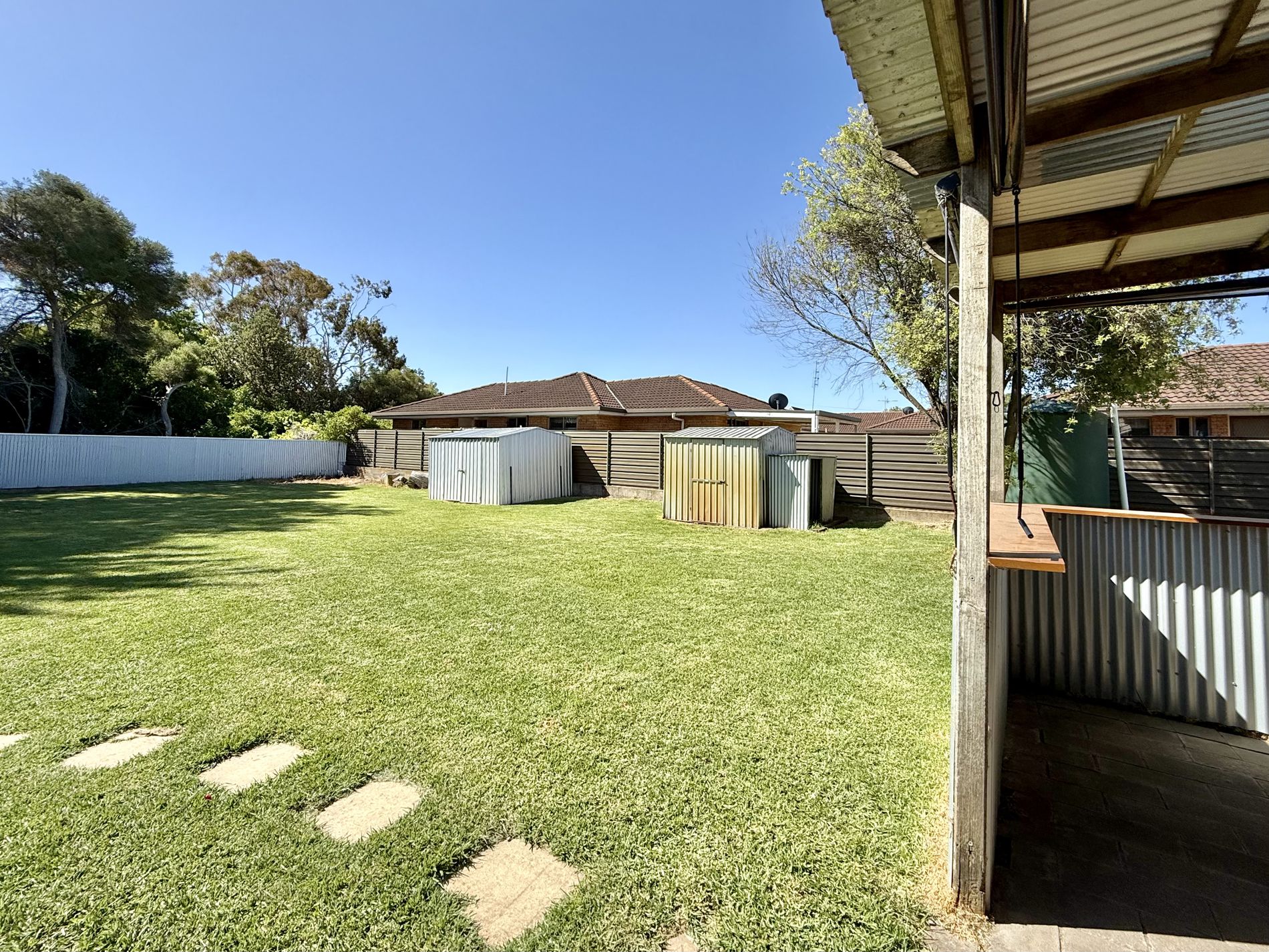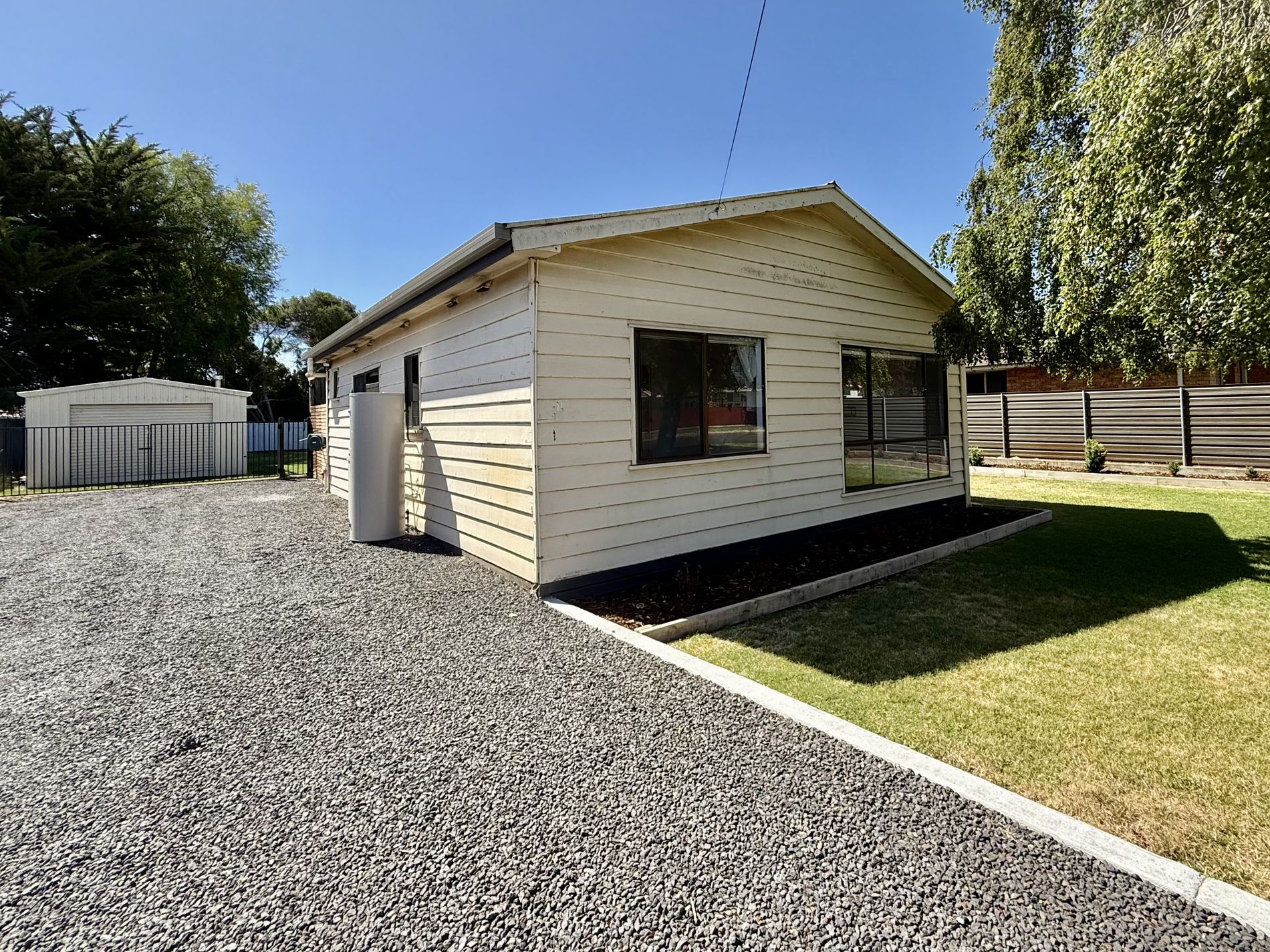 Externally, the fully fenced backyard is generous in size and offers plenty of room for children, pets, gardens, or future improvements. Additional outdoor features include an unequipped bore, a 5,000-litre rainwater tank, and two small garden sheds for storage. A single carport adjoins a Colorbond garage with cement flooring and a slow combustion fire, providing a versatile space for parking, storage, or workshop use.