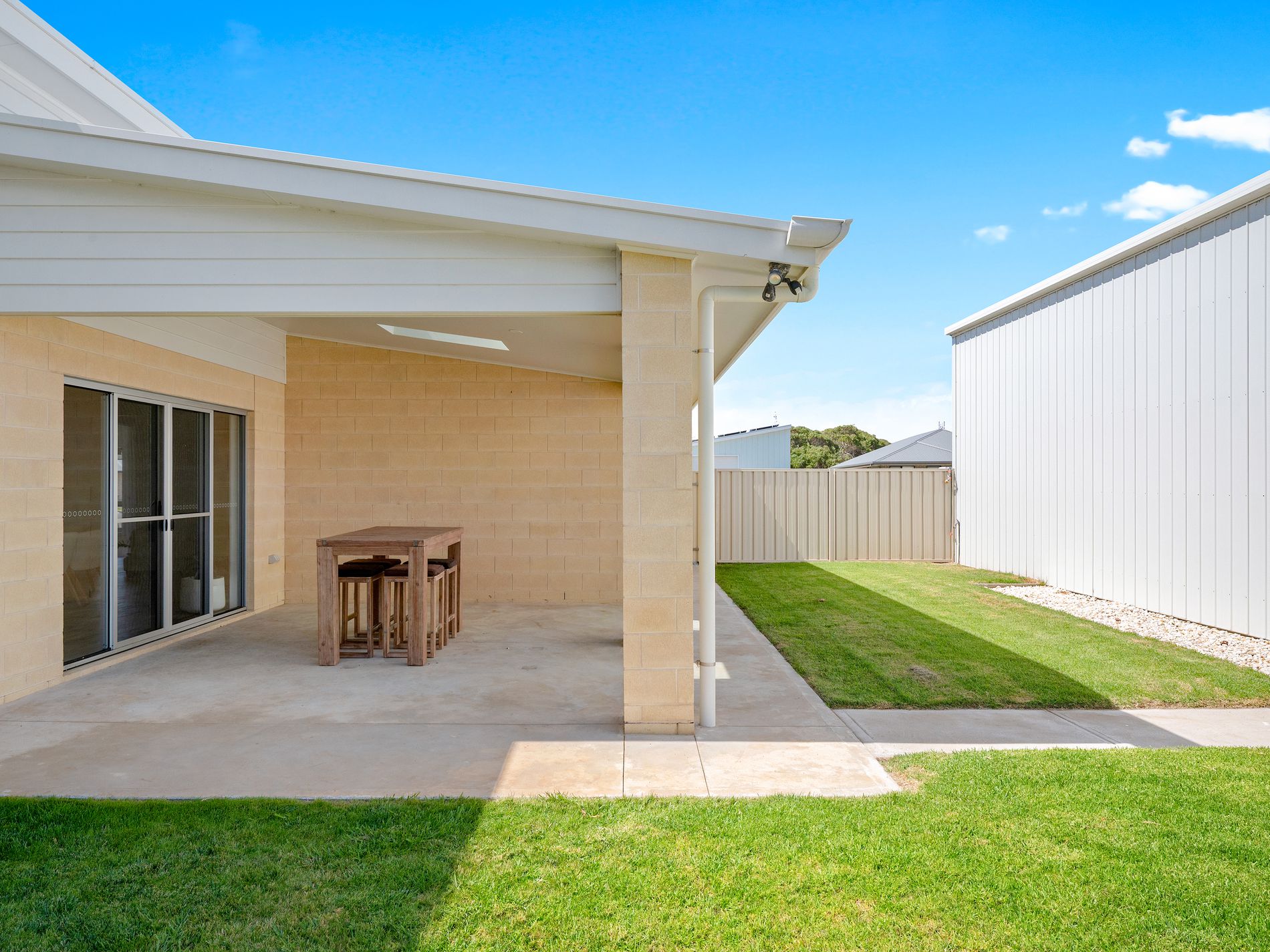 Built in 2023 by trusted local builder Seco Homes, the property features Cape Jaffa stone construction, a Colorbond roof and aluminium windows, ensuring durability and low ongoing maintenance. The easy-care gardens enhance the home’s street appeal while making it ideal for lock-up-and-leave convenience.