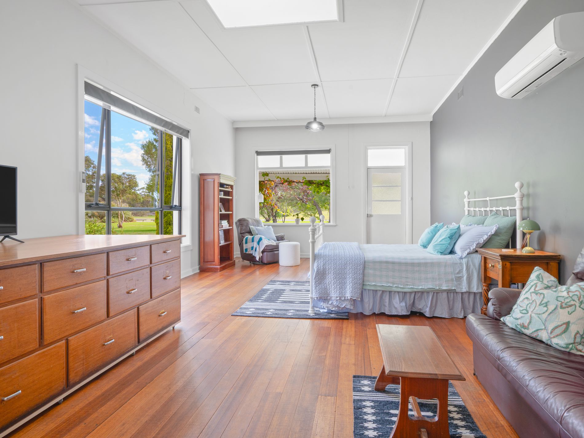 One of the property’s most fascinating features is the beautifully transformed former general store. Currently utilised as a grand master suite, this impressive space offers an expansive and private retreat with its own access from the front porch. It could easily adapt to a variety of uses including a studio, gallery, home business, salon, gym or even the revival of a small local store (STCA).