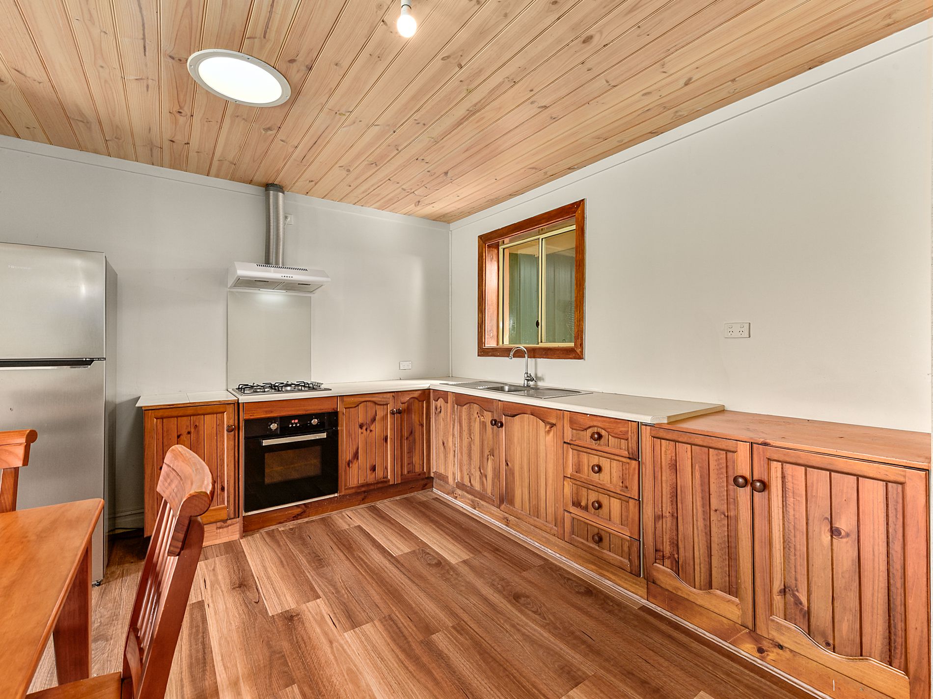 The functional kitchen is well-equipped with a gas cooktop, electric oven, and pantry, making everyday living both practical and enjoyable. Centrally positioned, the bathroom includes a shower and vanity, complemented by a separate toilet for added convenience.