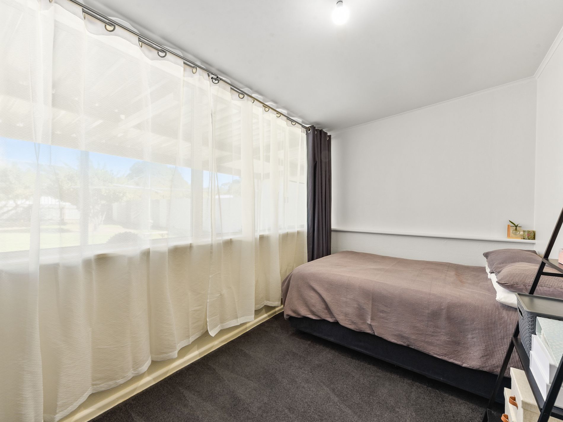 Stepping outside, the verandah provides a great space to relax or entertain, while the pergola extends your outdoor living options further. The low-maintenance yard ensures you can enjoy the space without the upkeep. Adding to the practicality is a second outdoor toilet—ideal for guests or when spending time outside.