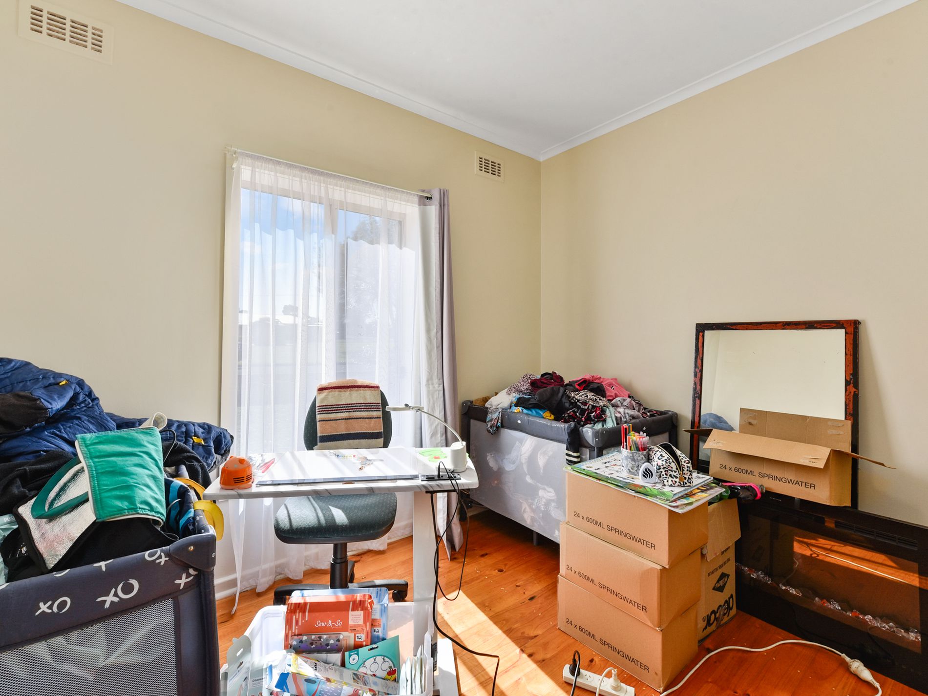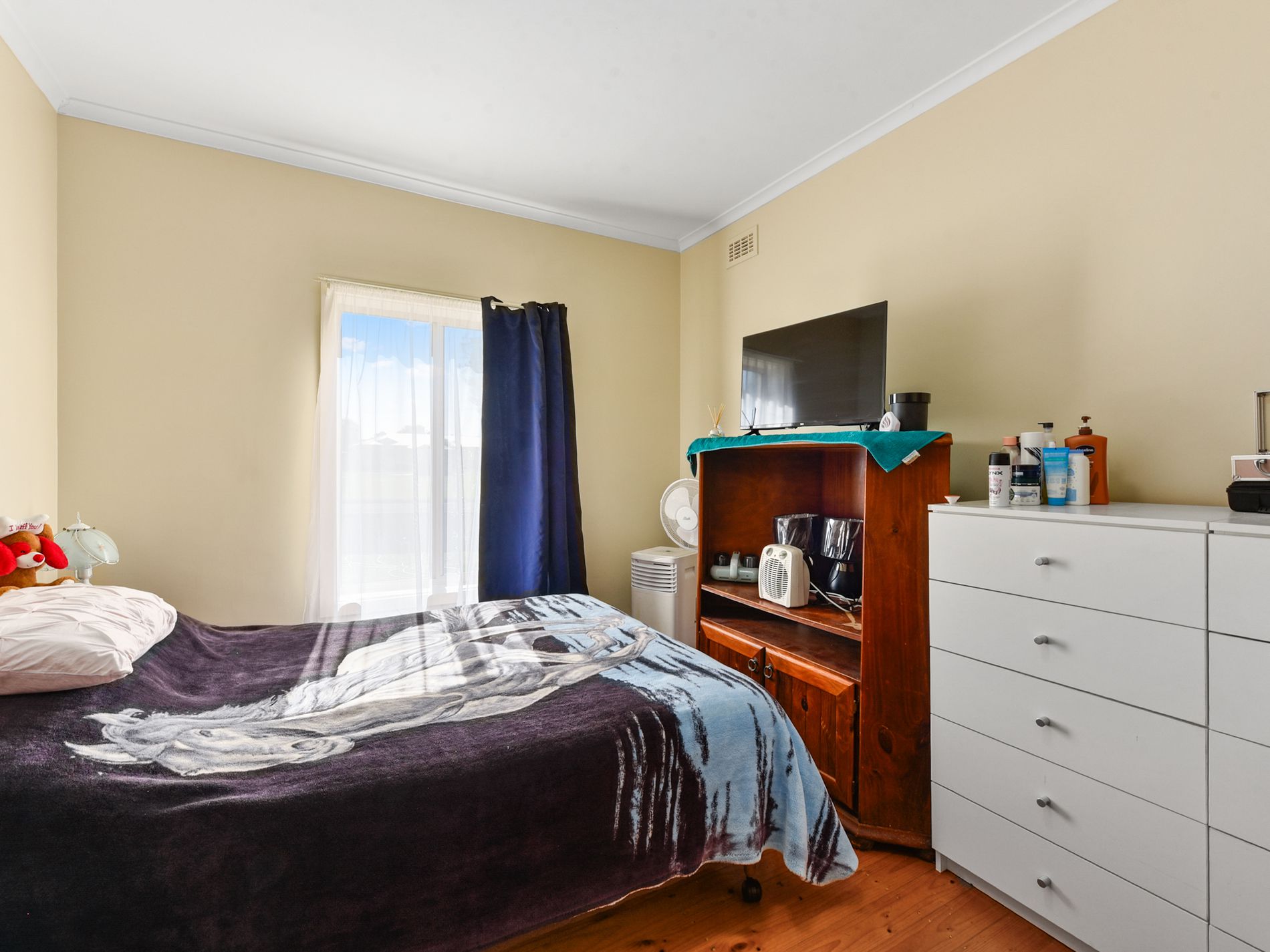 Freshly painted throughout, the home features polished timber floorboards that add warmth and character across the living spaces. The light-filled lounge is complemented by a slow combustion heater, creating a cosy atmosphere during the cooler months.