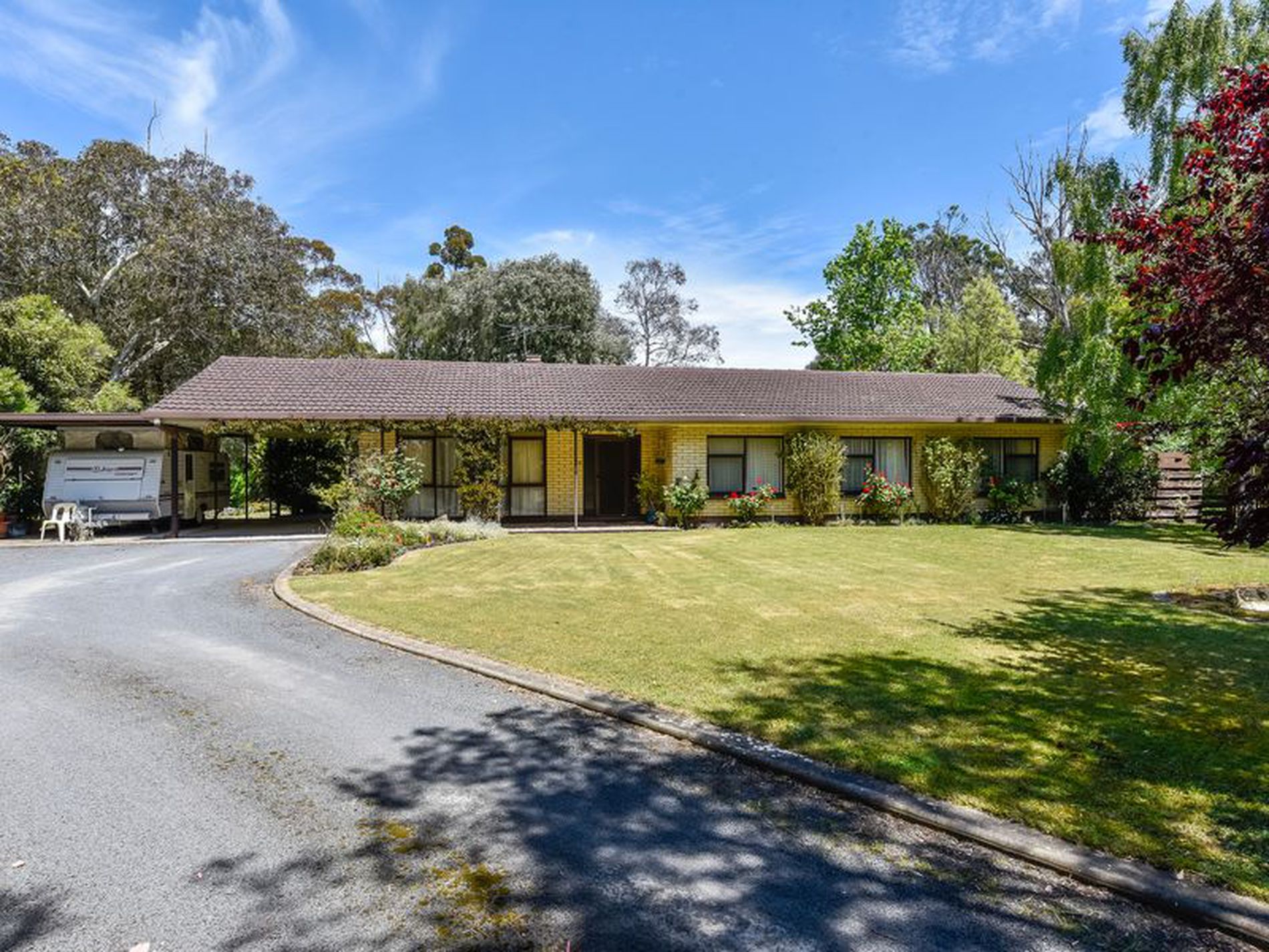 There is a double carport under the main roof as well as an undercover space for a caravan.