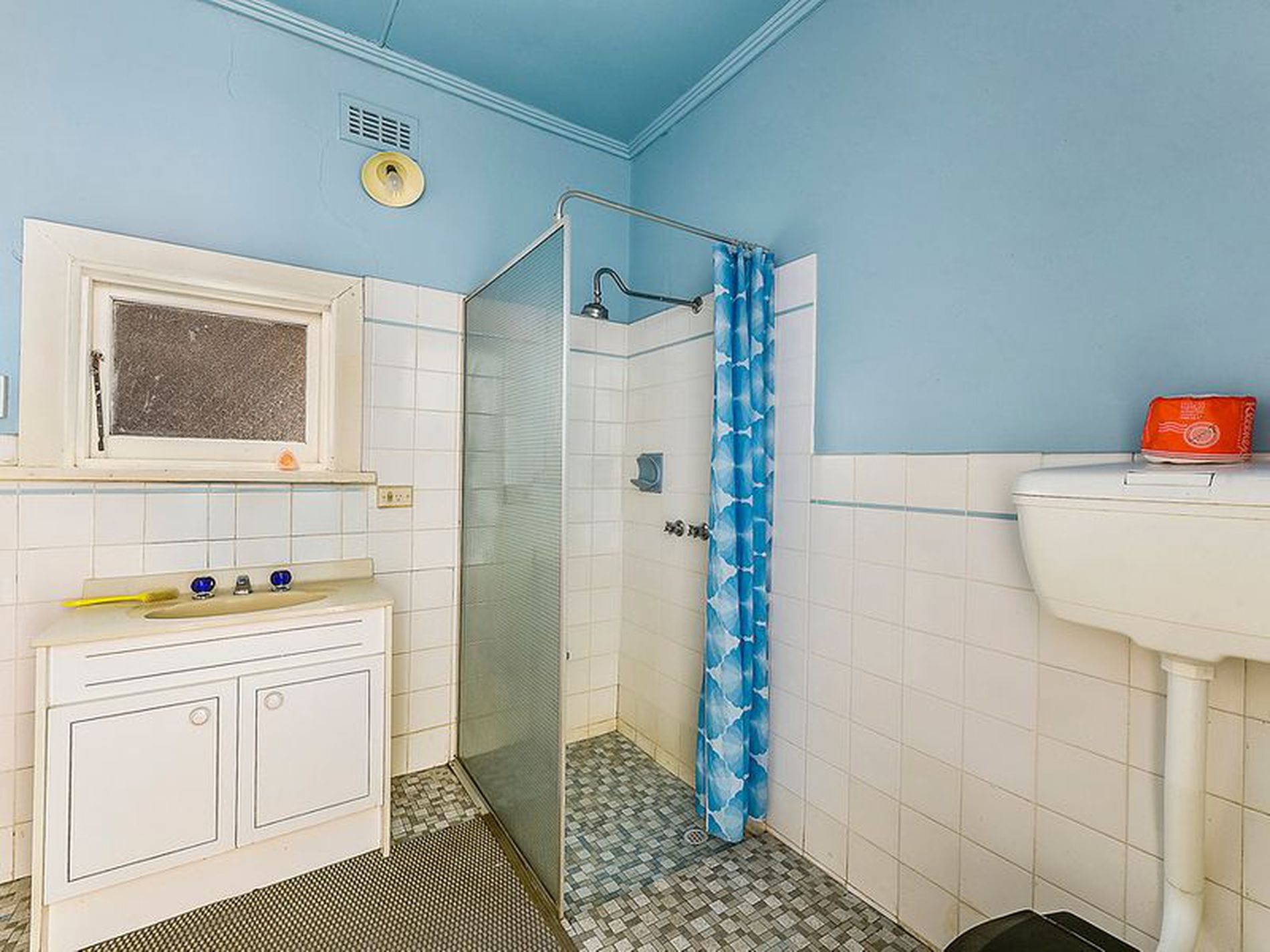 Bathroom has shower, vanity and toilet. Laundry outside URM