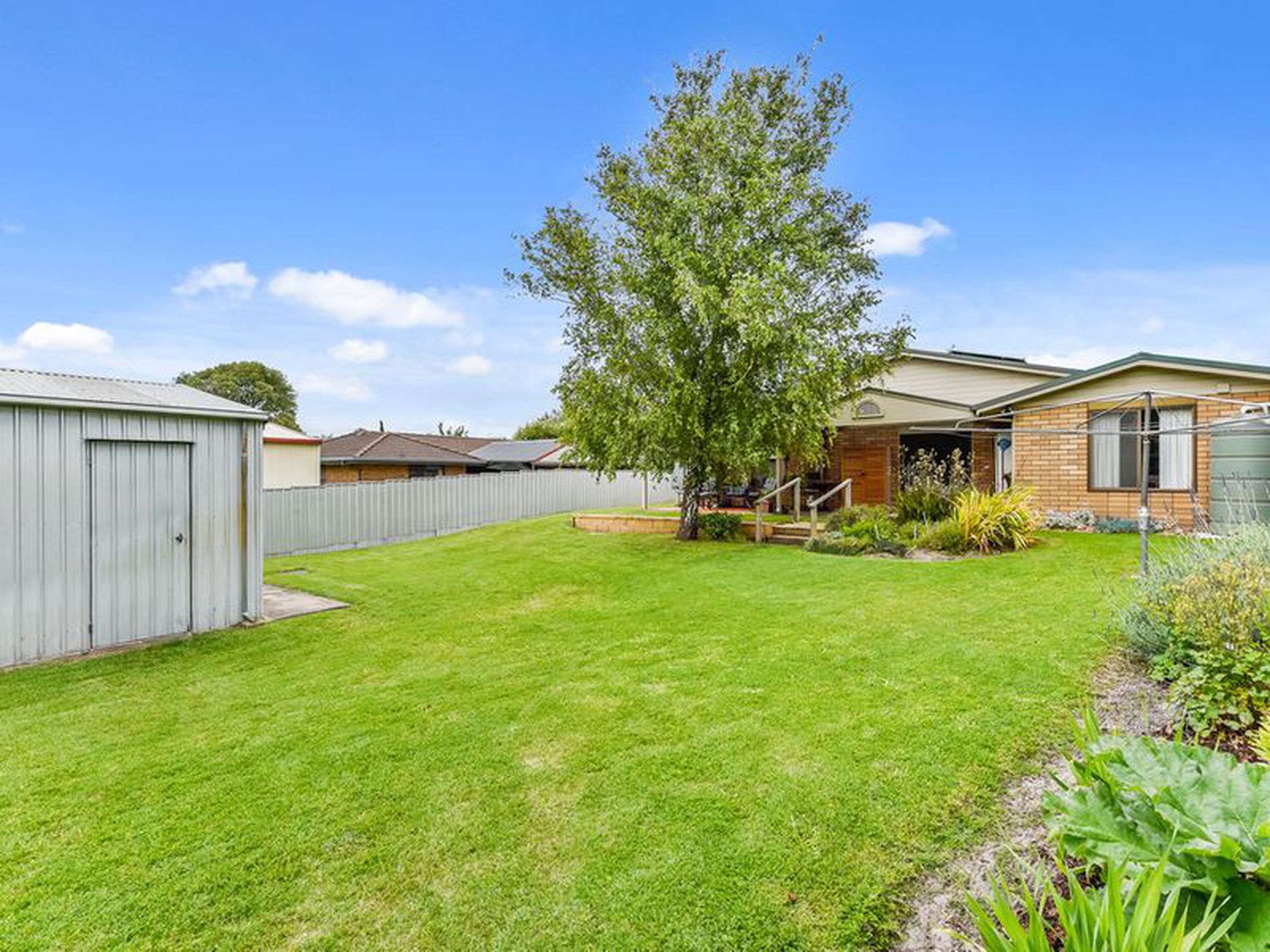 The rainwater tank is plumbed to the kitchen and a bore with sprinkler system keeps the lawn green.
