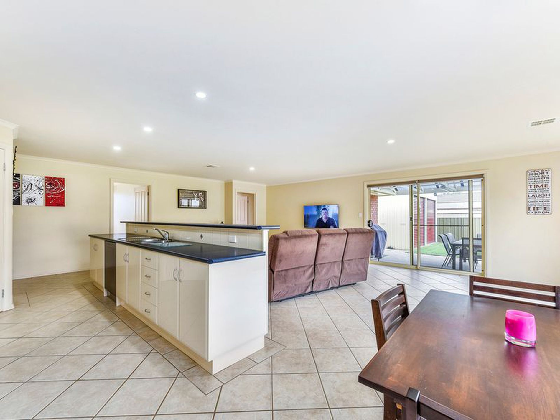 Fantastic kitchen island breakfast bar open to the tiled family room. Dishwasher and double sink. Electric underbench oven, gas hot plates and Walk in pantry