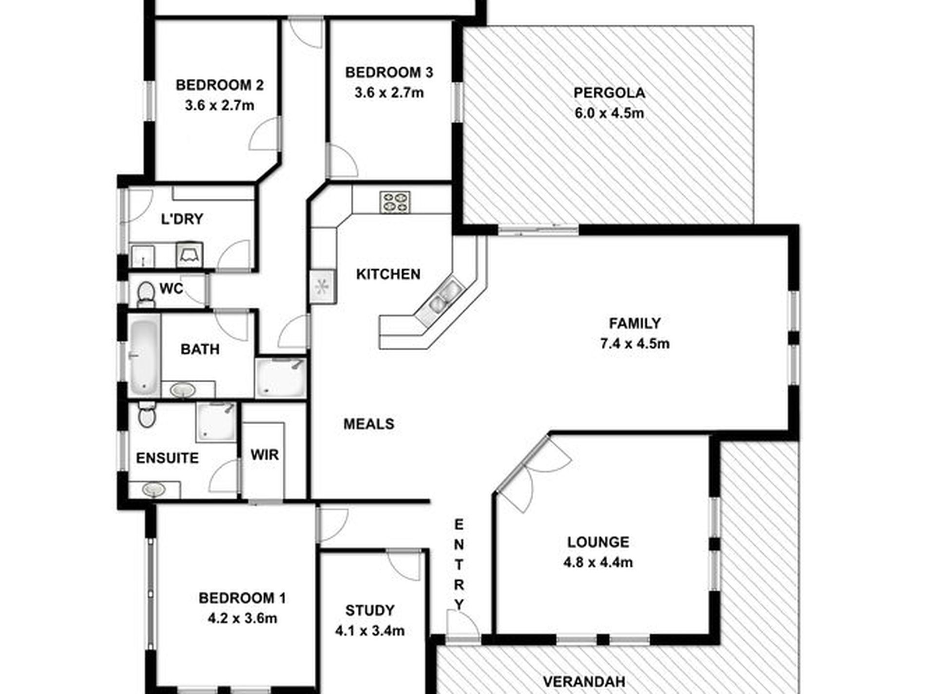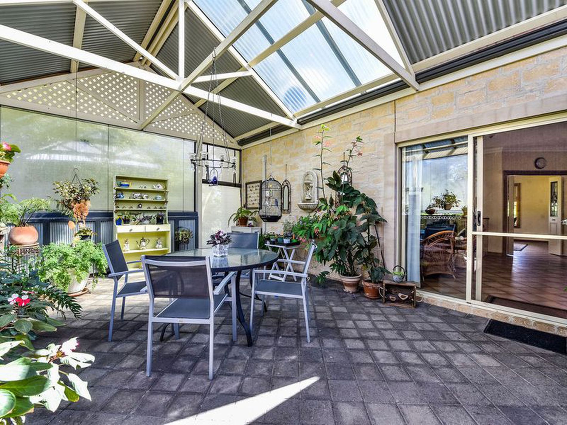 The glass Sliding doors invite the outdoors in and pergola is ideally located for easy entertaining