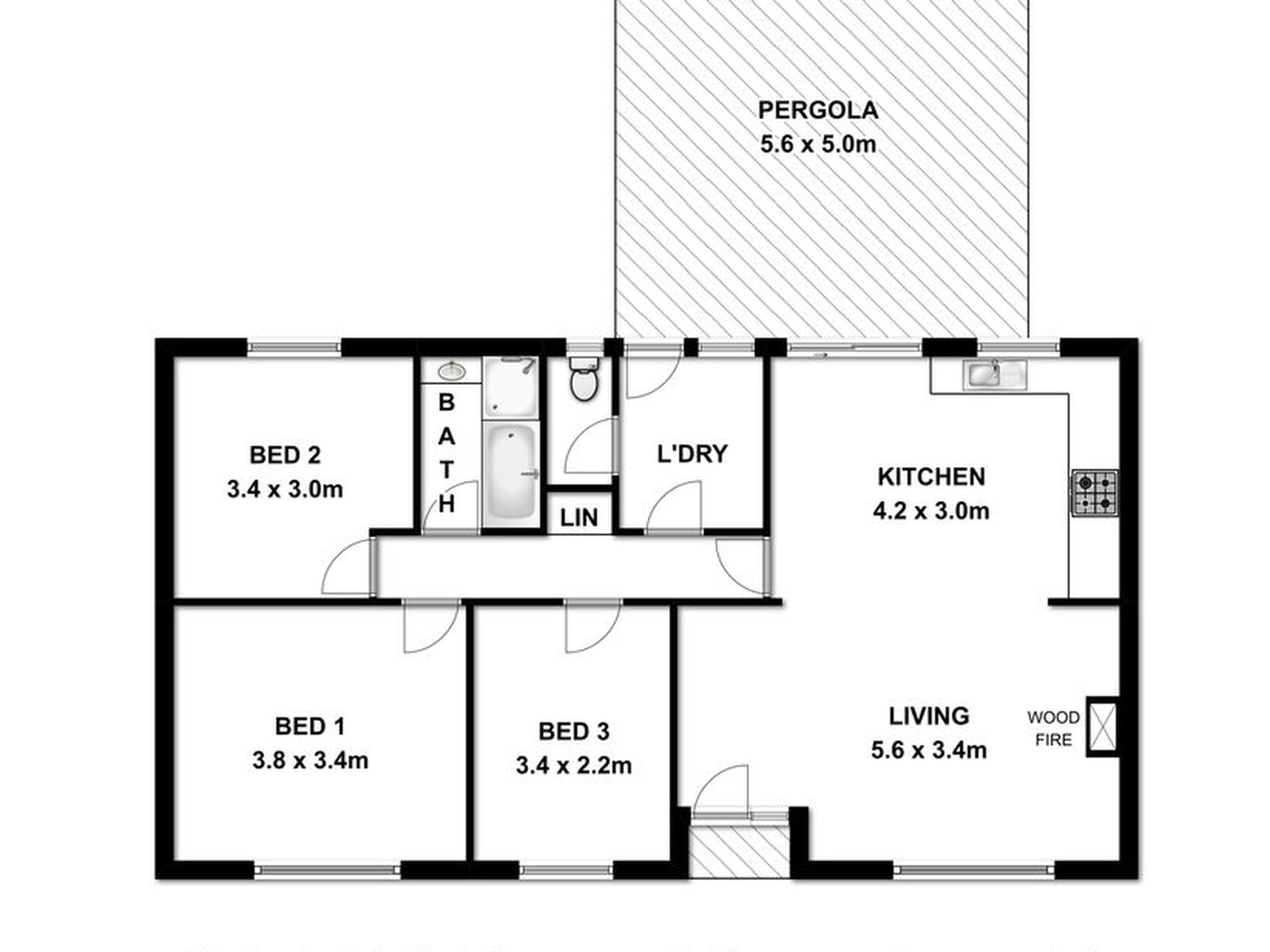 Open plan kitchen, dining, living with slow combustion wood heating and reverse cycle air conditioning, the entry and kitchen has a lovely slate floor while the living area is carpeted with blinds. The kitchen has electric cooking, range hood and open dining. Sliding doors lead out into the semi enclosed rear pergola.