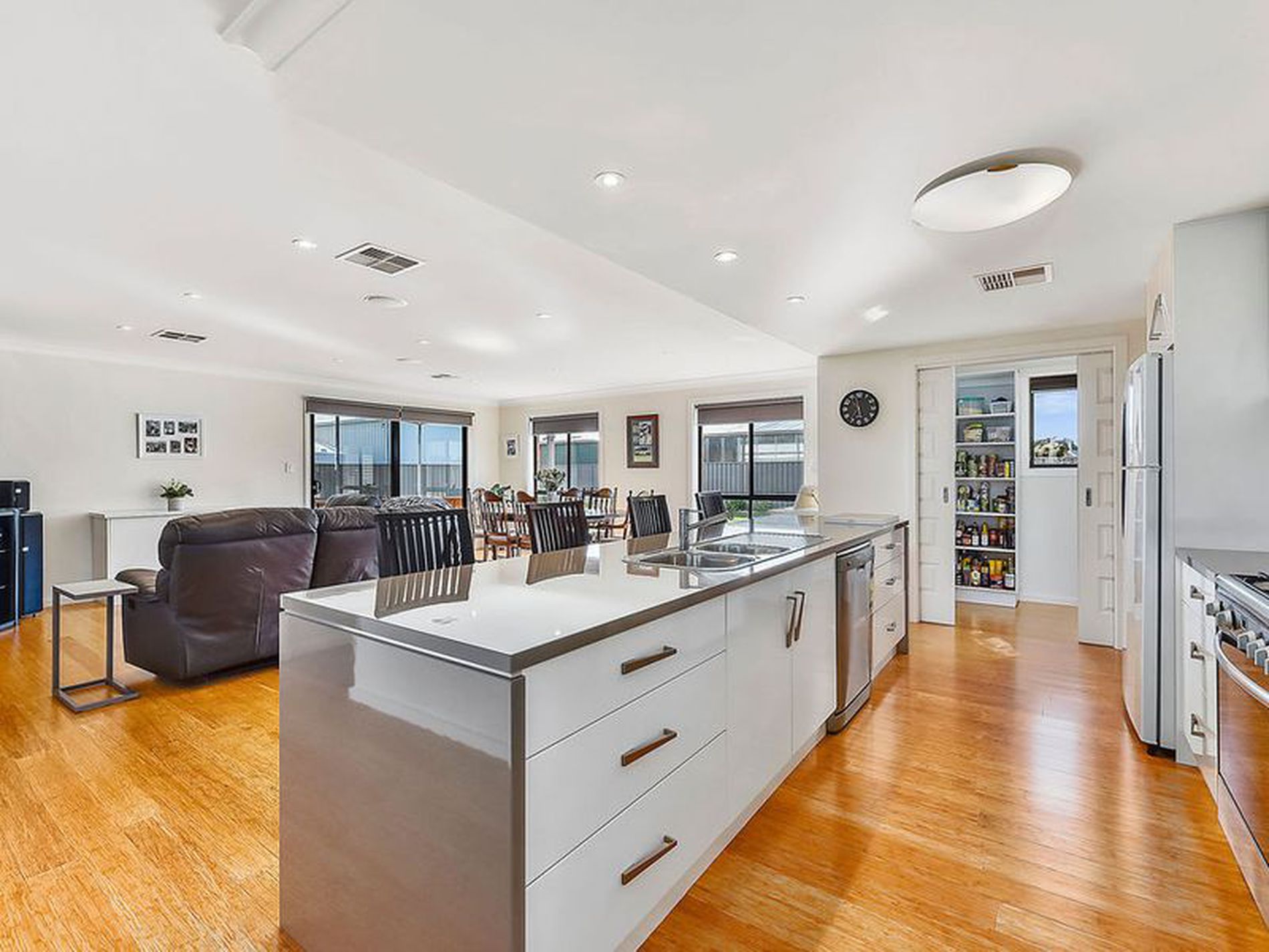 The central hub of the home is made up of the huge open plan kitchen, family and meals with access to the outdoor undercover alfresco space. The whole area has bamboo floating floors and blinds. A surround sound sound system makes movie watching and gaming an experience not a passtime.