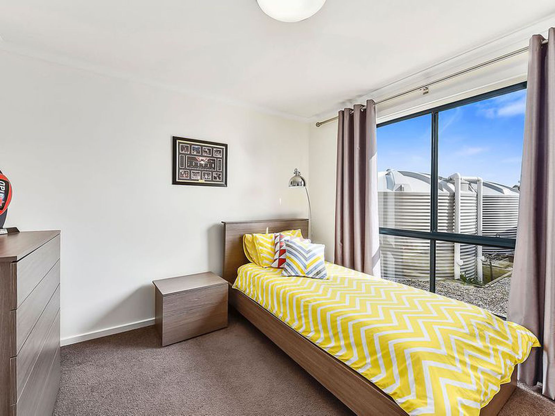 To your right you have the second living, formal lounge/home media : however you want to use it it's a cosy space with carpeted floor and blinds.