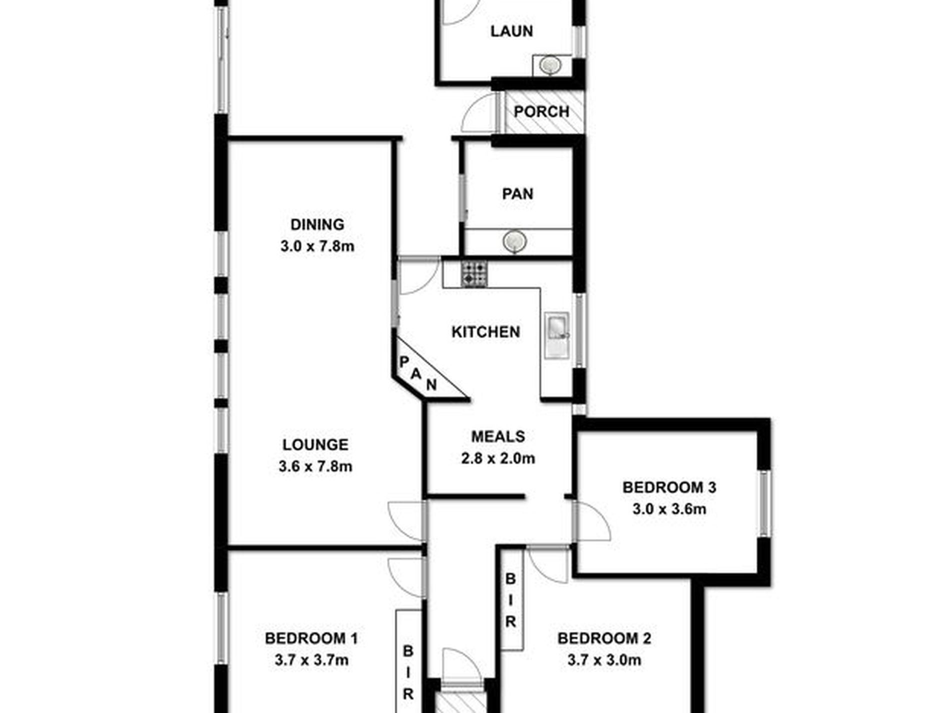 2 large open living areas - see floor plan. Front lounge has Reverse cycle air conditioner, built in timber buffet cupboards and ceiling fan.