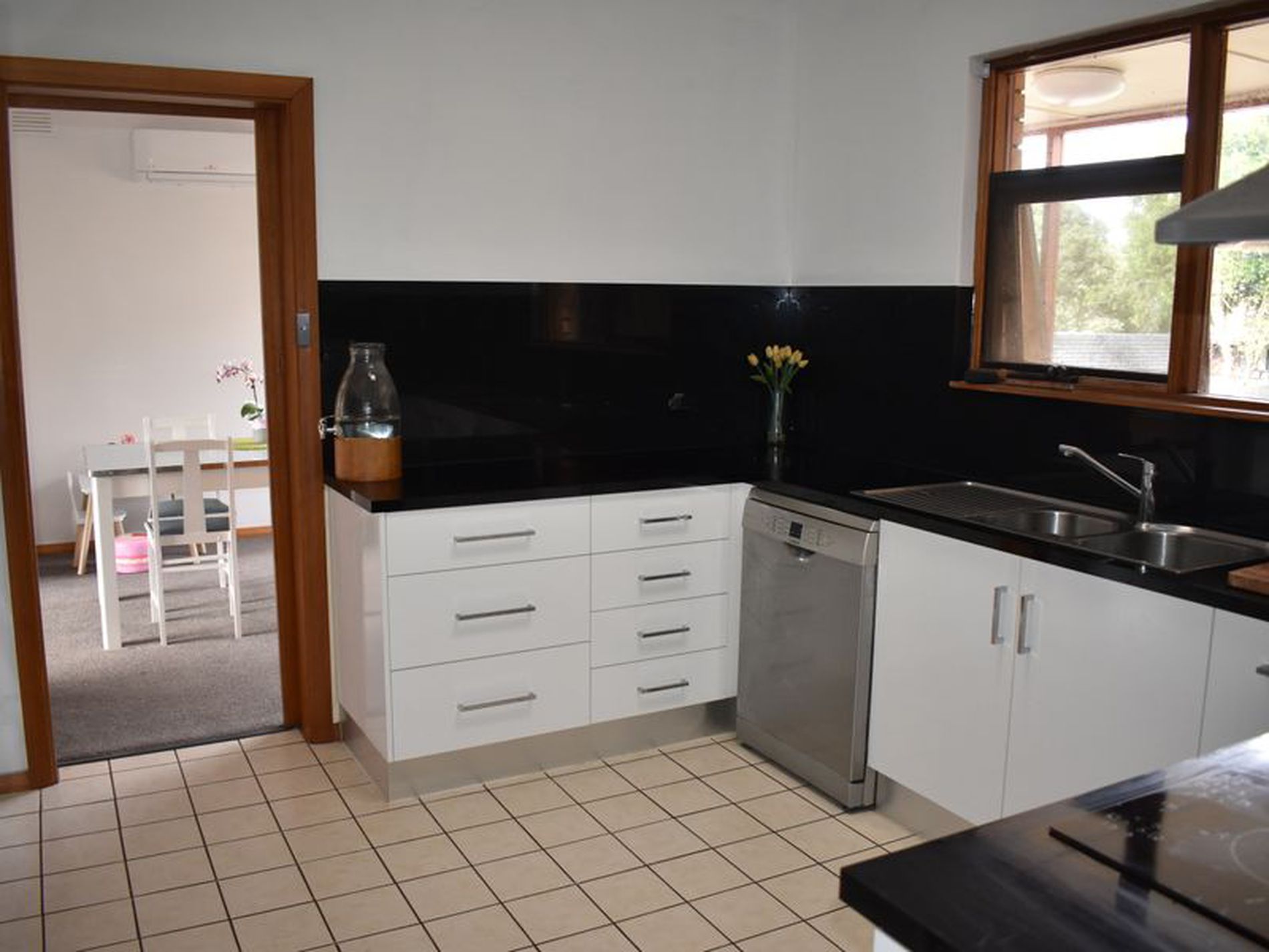lounge with gas heating, separate dining area of the new kitchen with skylight, double sink, underbench oven and Elect H/P's, dishwasher and pantry cupboard.