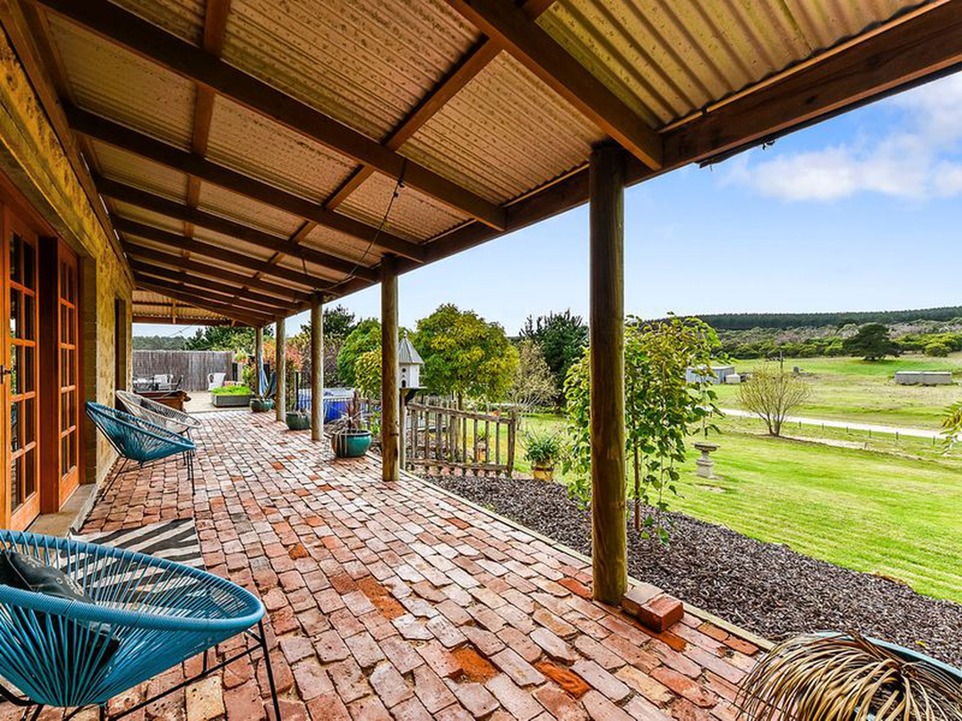 Outdoor living hasn't been forgotten here with the excellent decked entertainment area straight out from the family / living area, once again through beautiful french doors. This area has a pizza oven and overlooks the fully fenced above ground pool and the lovely, rustic style feature garden which is watered by a sprinkler system serviced by a pump and bore. There is an awesome firepit in the garden, just another option when entertaining family and friends.