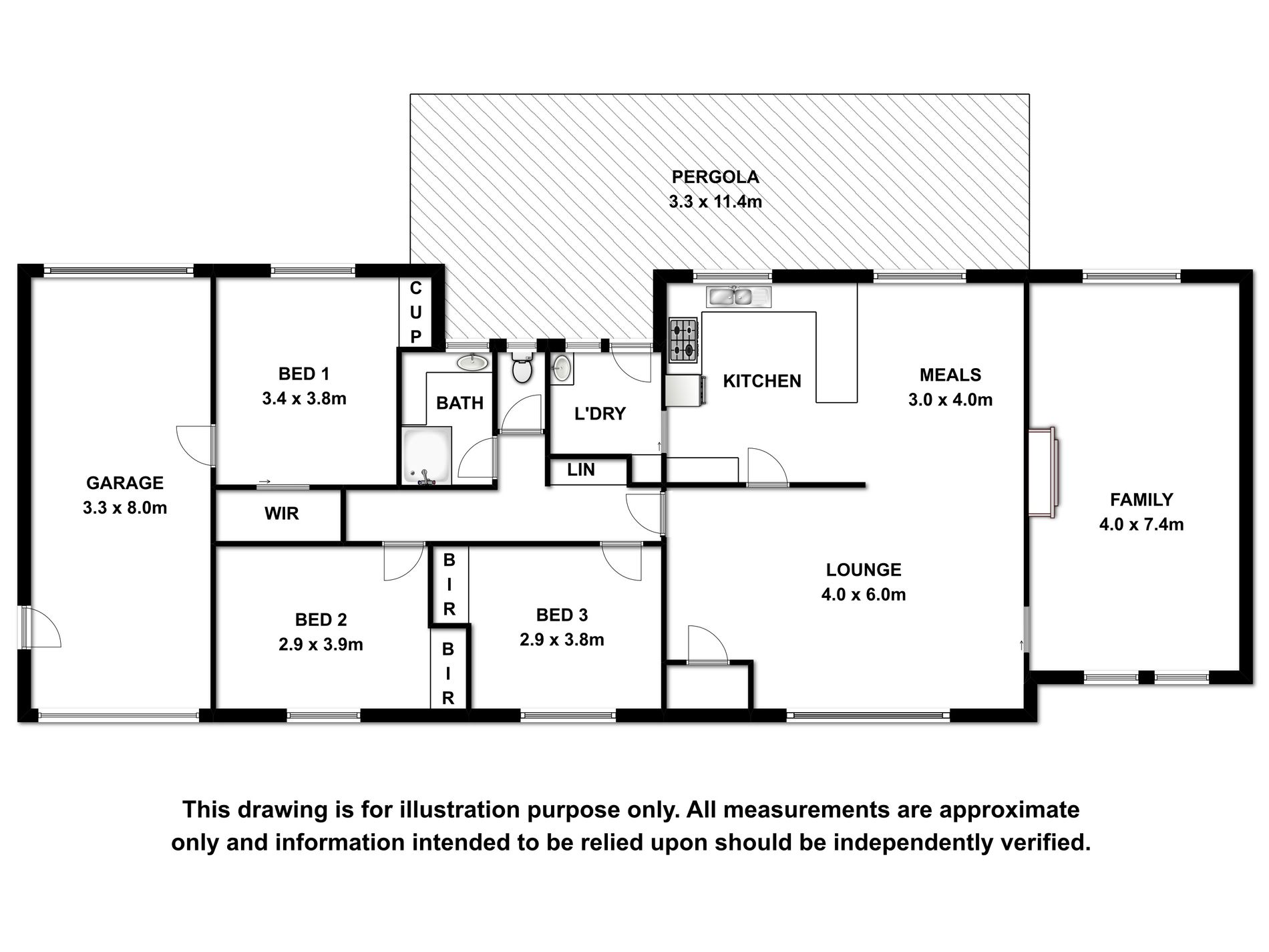 The laundry is tiled and has an external door to the rear pergola and yard.